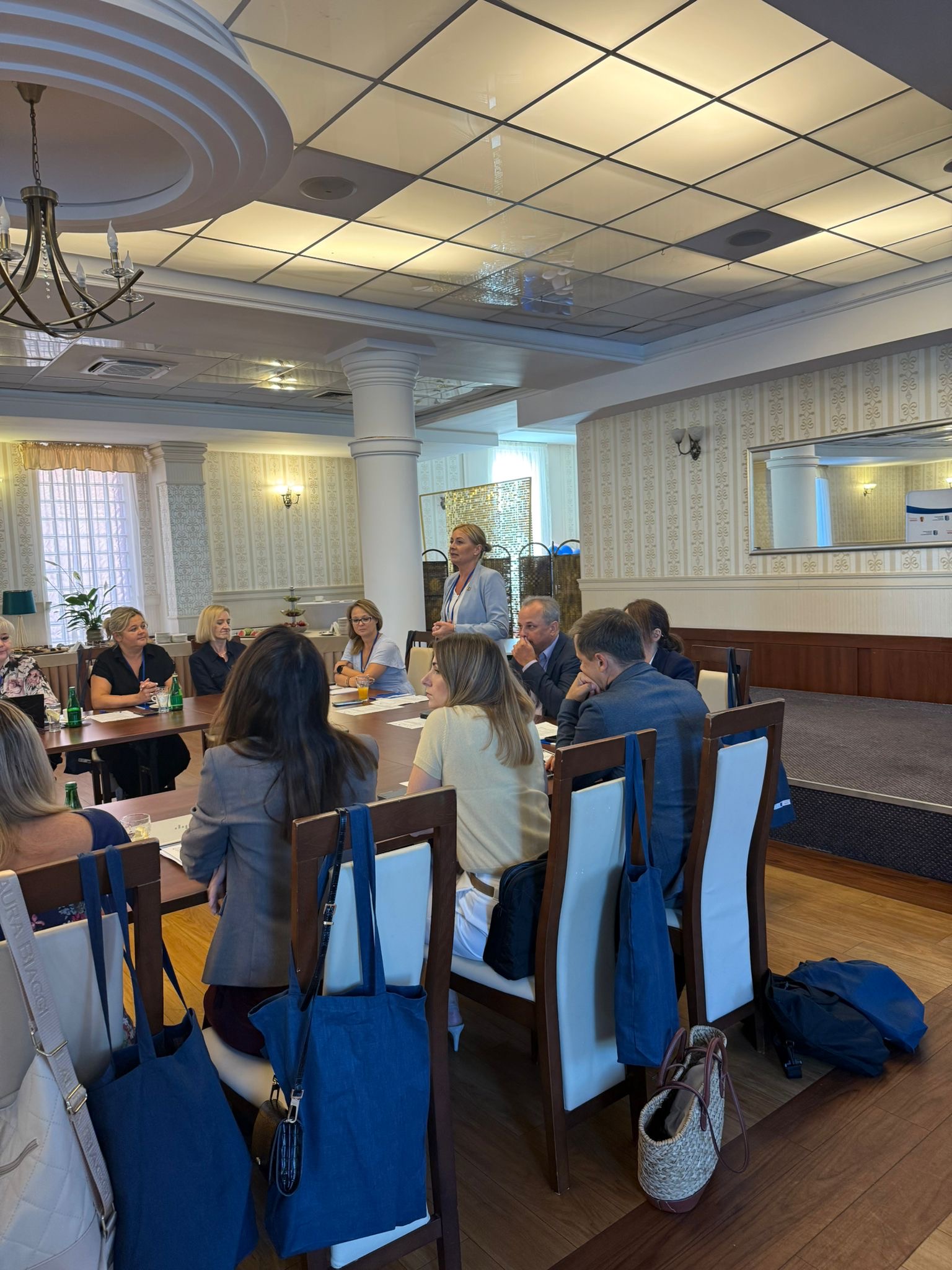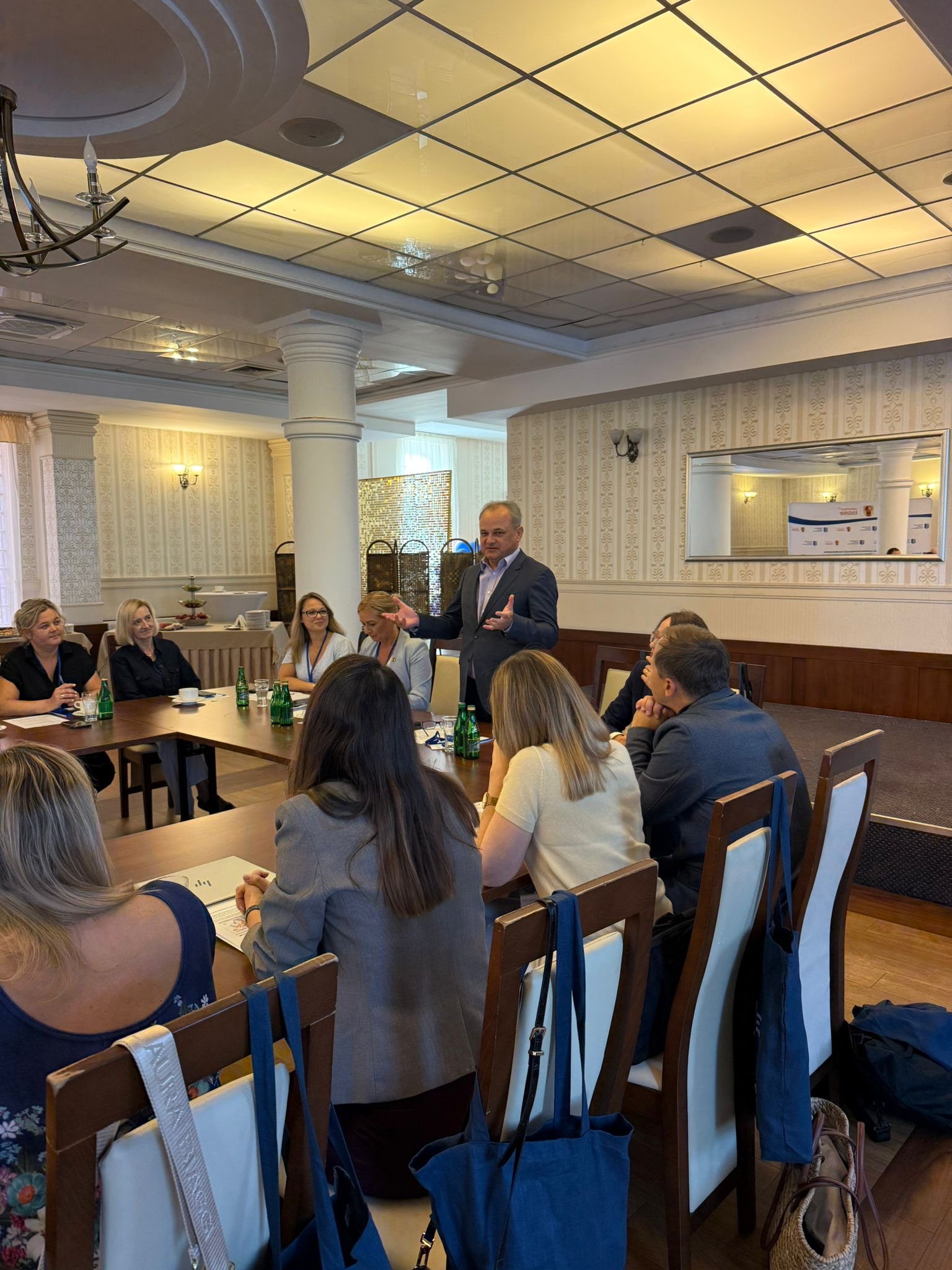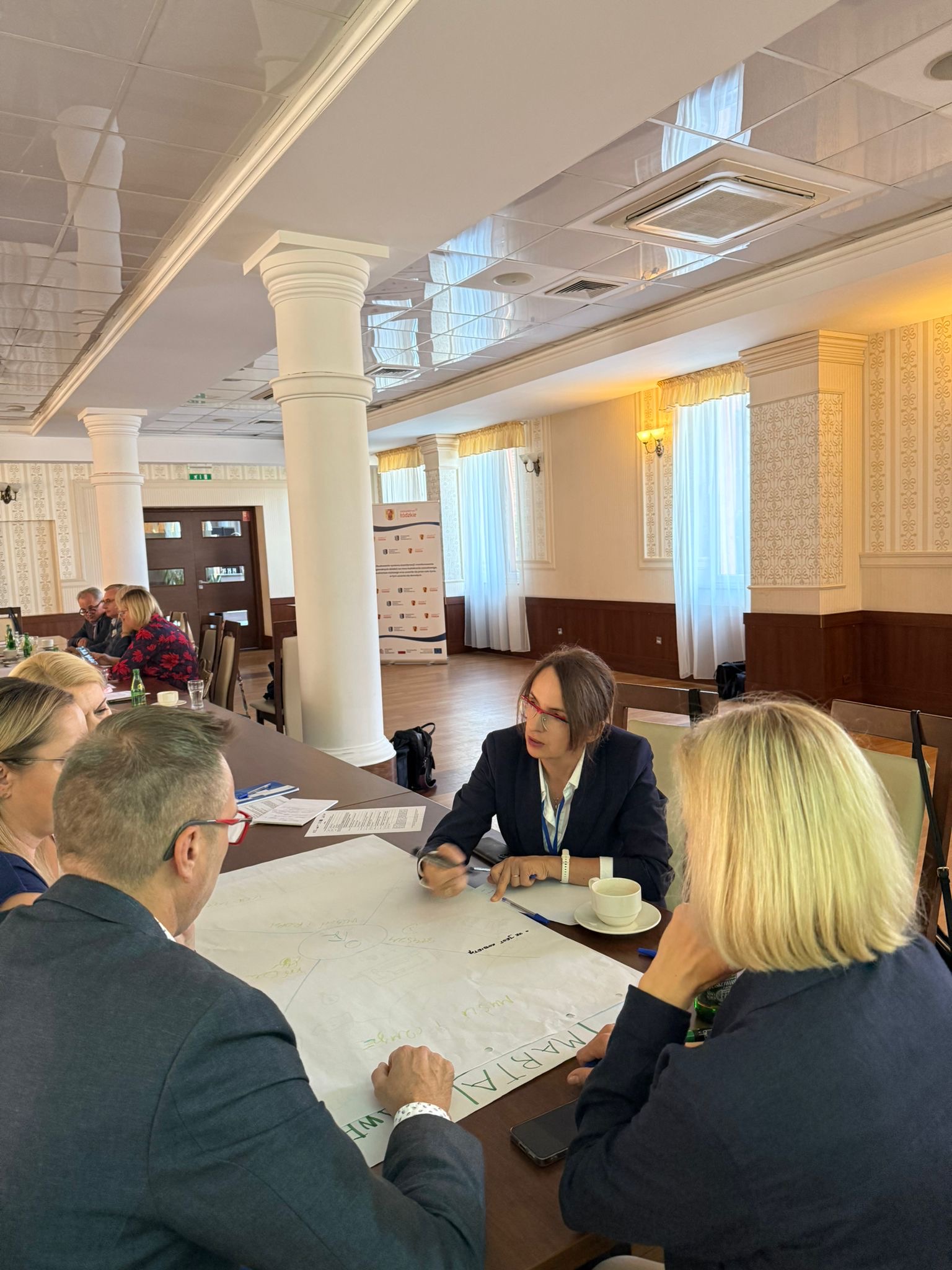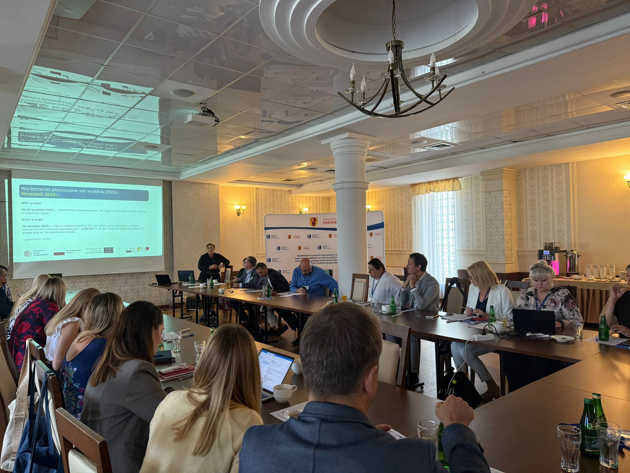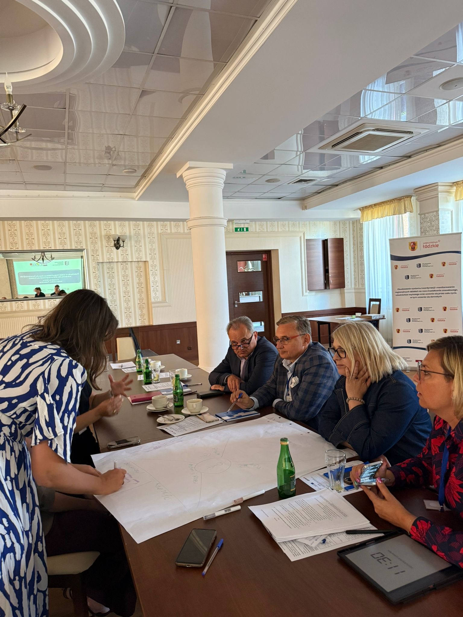 Kolejnym punktem posiedzenia było wystąpienie i warsztat poprowadzone przez panią Igę Kopeć prawniczkę, pedagożkę i doradczynię biznesową z wieloletnim doświadczeniem. W swoim wystąpieniu „Jak skuteczna współpraca edukacji z biznesem może zatrzymać talenty w regionie?” prelegentka wskazała, że tylko ścisłe powiązanie programów kształcenia z potrzebami pracodawców pozwoli na zatrzymanie młodych i zdolnych osób w województwie łódzkim. Podczas warsztatów uczestnicy pracowali nad praktycznymi rozwiązaniami w zakresie współpracy edukacji i biznesu, które mogą być wdrażane na poziomie lokalnym i regionalnym.