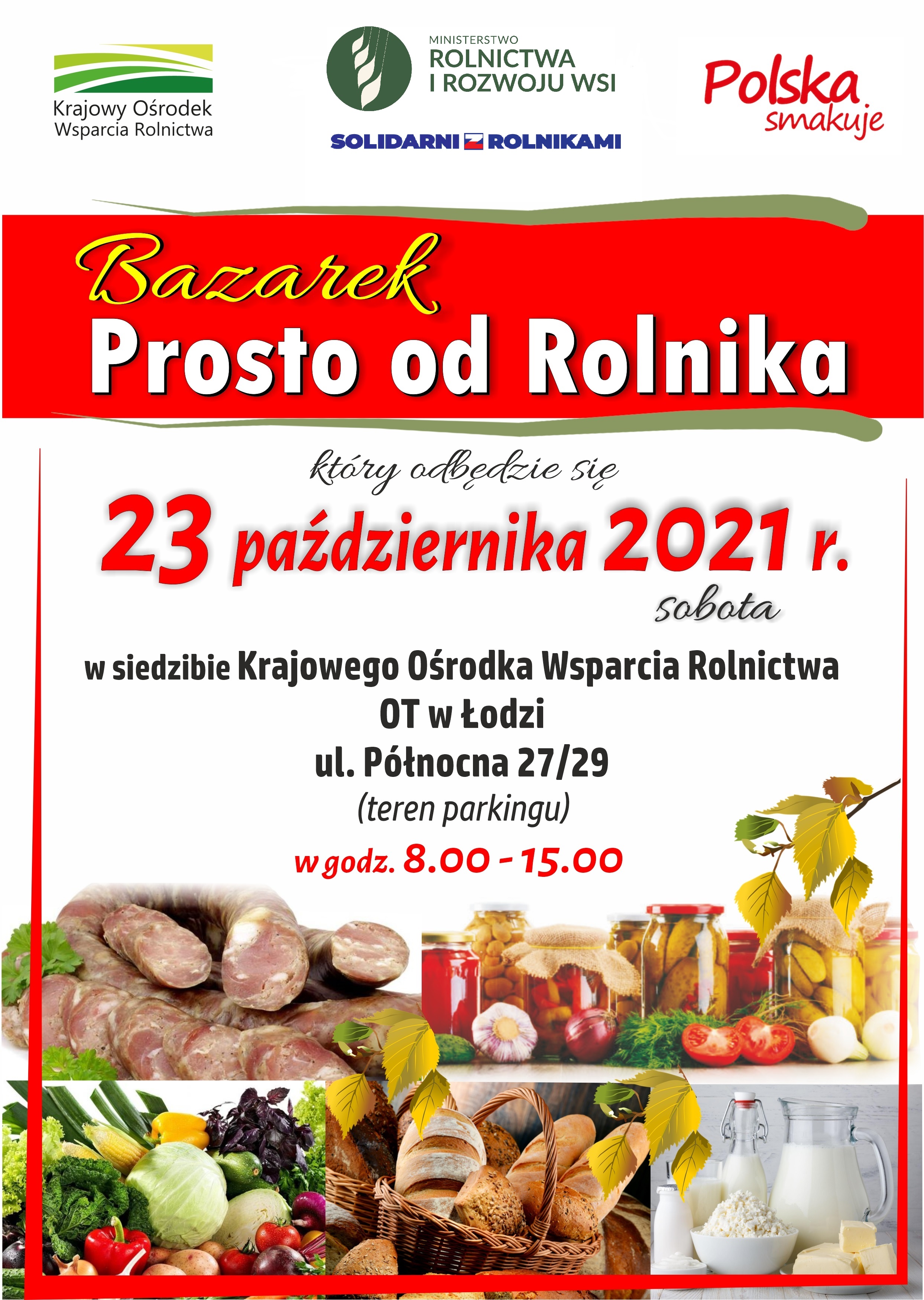 czwartek, 14 października 2021W ramach działalności Krajowego Ośrodka Wsparcia Rolnictwa OT w Łodzi w dniu 23 października zostanie otwarty „Bazarek – prosto od rolnika”