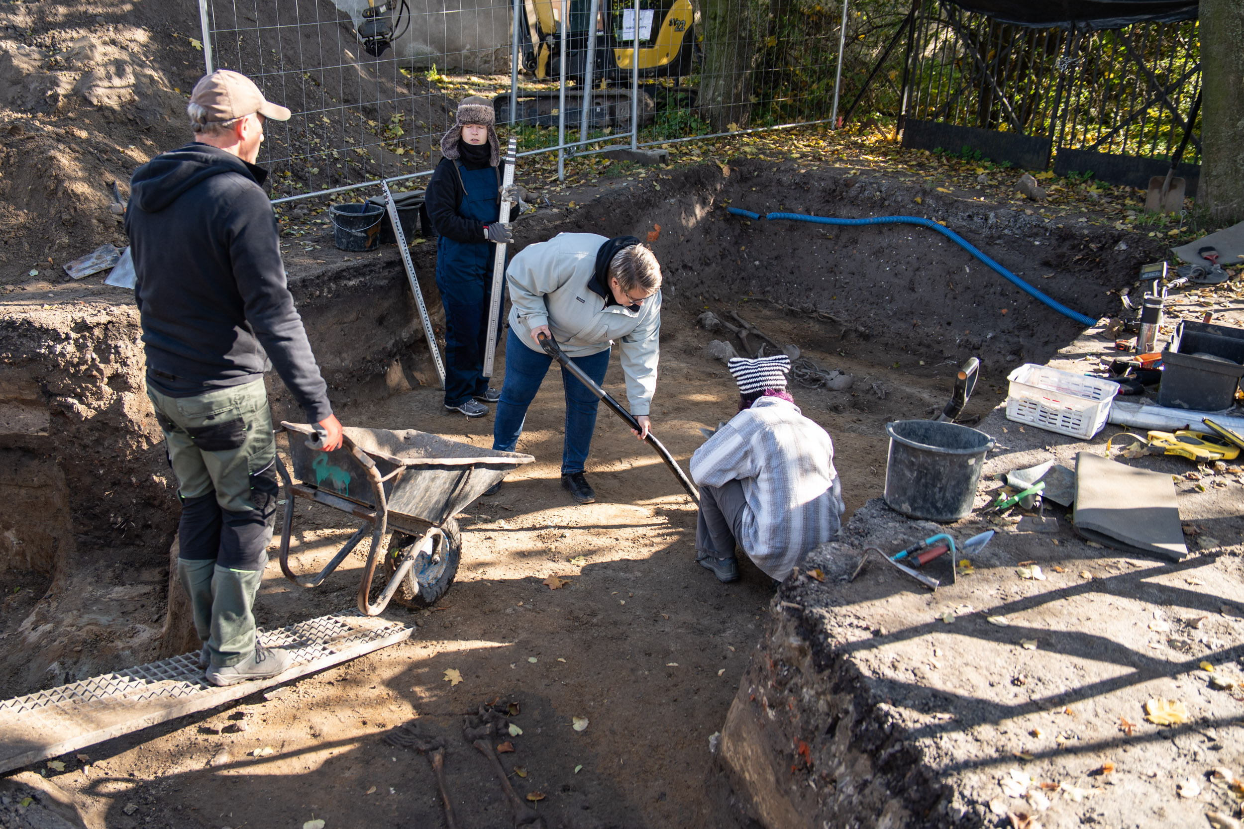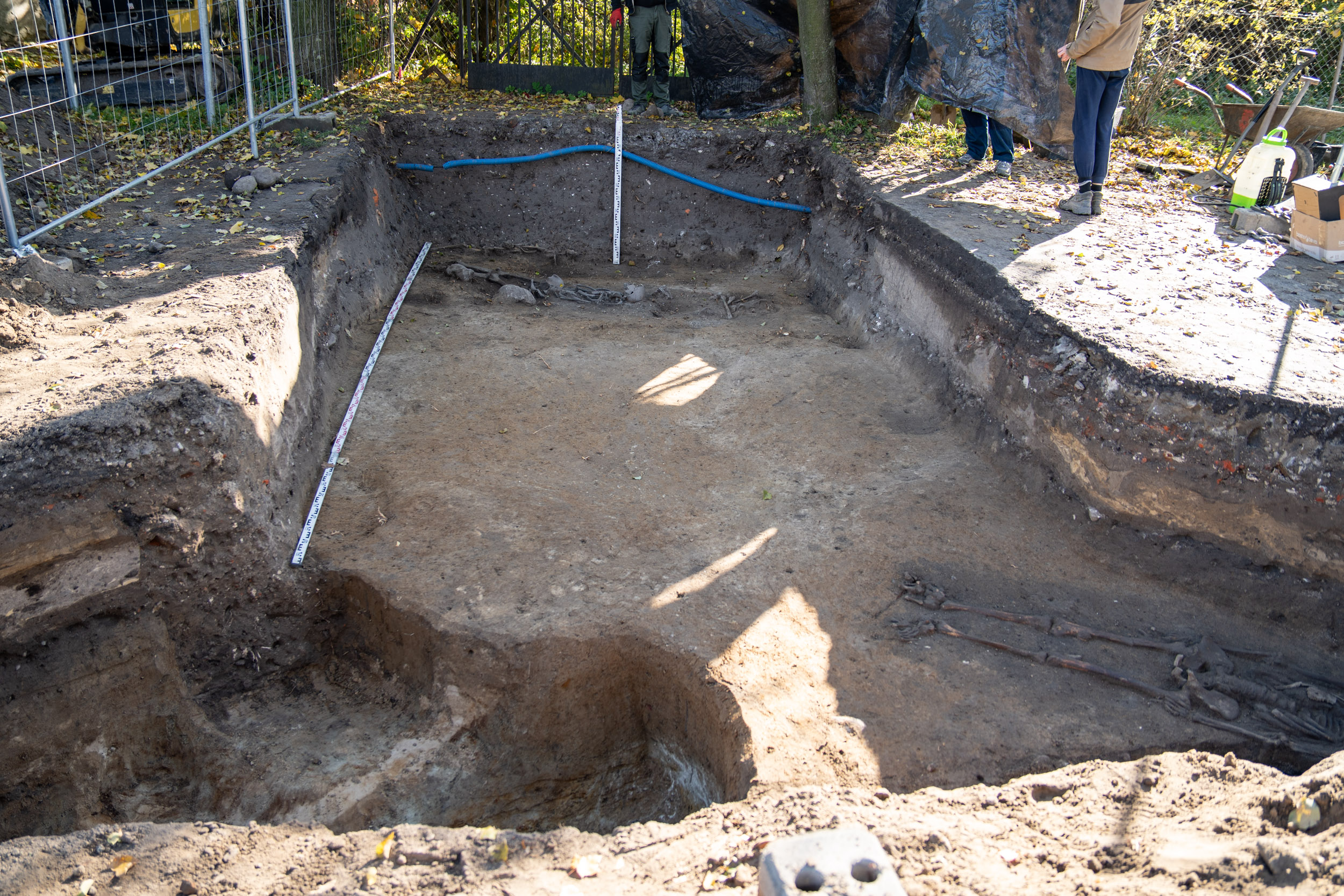 - Ich funkcja na tym etapie badań nie jest jeszcze jasno określona, ale podejrzewamy, że były to wkopy związane z poborem gliny lub doły, w których lasowano wapno. Ich głębokość dochodziła do dwóch metrów poniżej dzisiejszego poziomu terenu. Odkrywaliśmy w nich fragmenty nowożytnej ceramiki, fragmenty szkła, kafli, a także kości zwierzęce. Wystąpiły w nich również liczne szczątki ludzkie bez układu anatomicznego, pochodzące zapewne ze zniszczonych, starszych pochówków - opowiada Waldemar Stasiak.