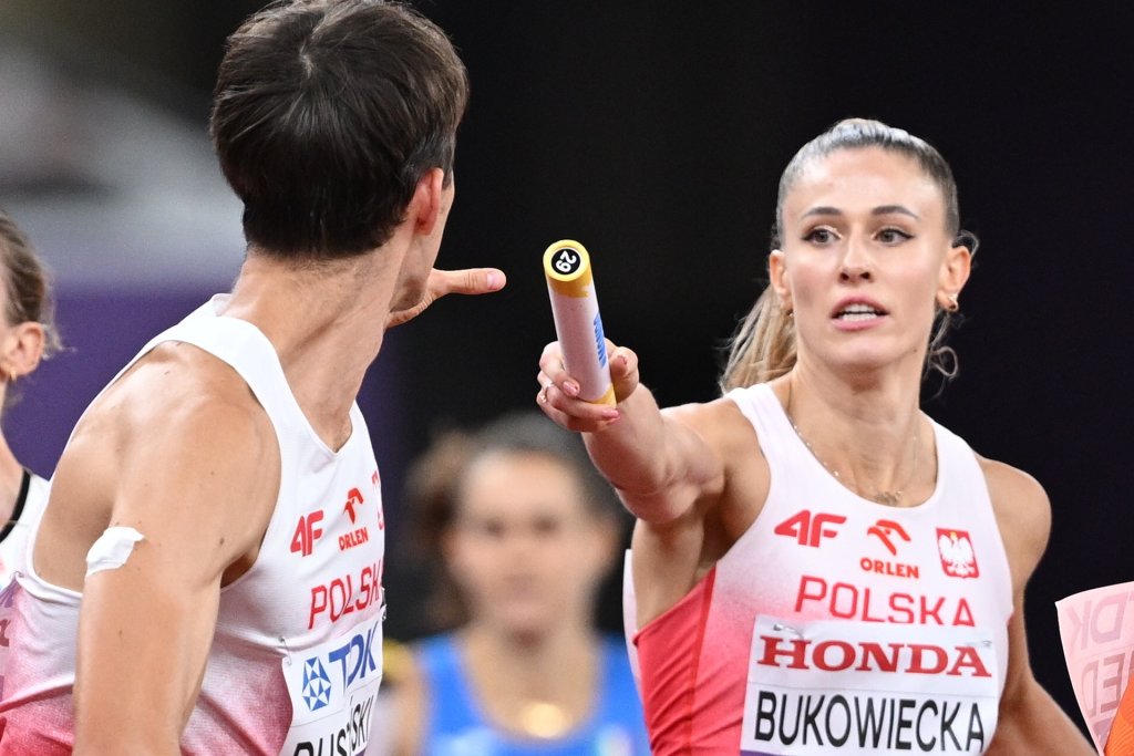 W porównaniu do porannych eliminacji w składzie biało-czerwonej sztafety doszło do jednej zmiany – Annę Gryc zastąpiła najszybsza polska biegaczka na dystansie 400 metrów, czyli Natalia Bukowiecka. Jako pierwszy na trasę ruszył Maksymilian Szwed, który nie miał łatwego zadania, bo startował z zewnętrznego toru i nie widział swoich rywali. Pobiegł jednak bardzo dobrze i przekazał Bukowieckiej pałeczkę na czwartej pozycji. – Jestem bardzo zadowolony z tych biegów. Przegrana o dwie setne na mistrzostwach świata o medal jednak boli. To byłoby coś fantastycznego – mówił Szwed z AZS Łódź.