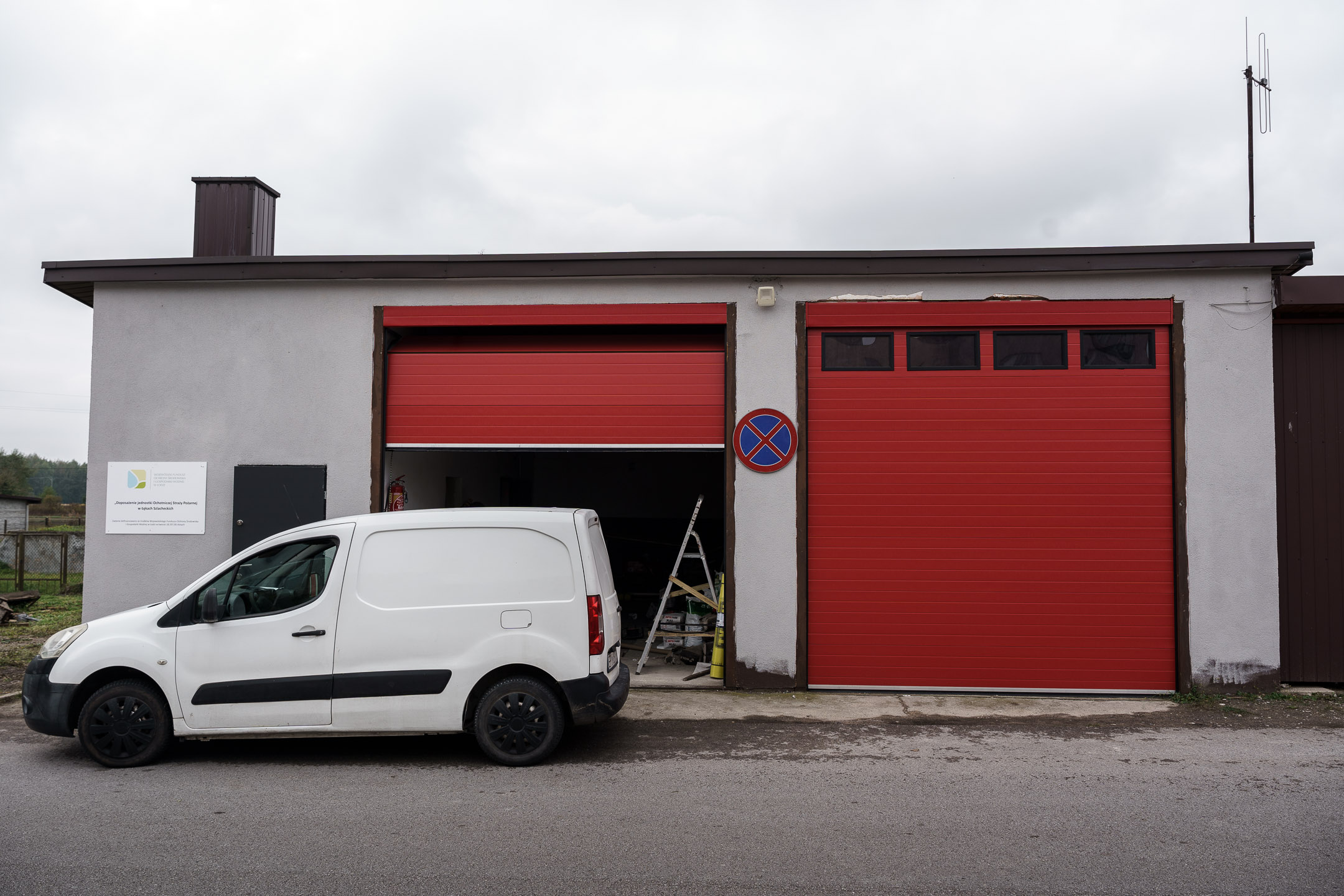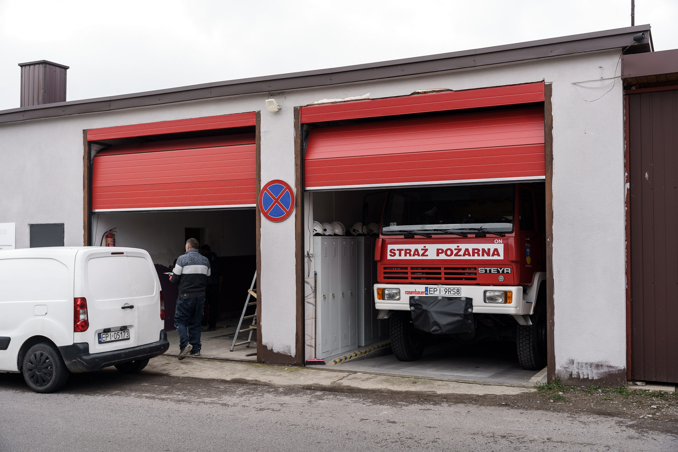Ekipa remontowa pracuje też w strażnicy OSP w Łękach Szlacheckich. Tu już zostały wymienione bramy wjazdowe, a całe zadanie obejmuje również remont garażu, w którym, jak liczą strażacy, wkrótce pojawi się nowy, mały wóz bojowy.