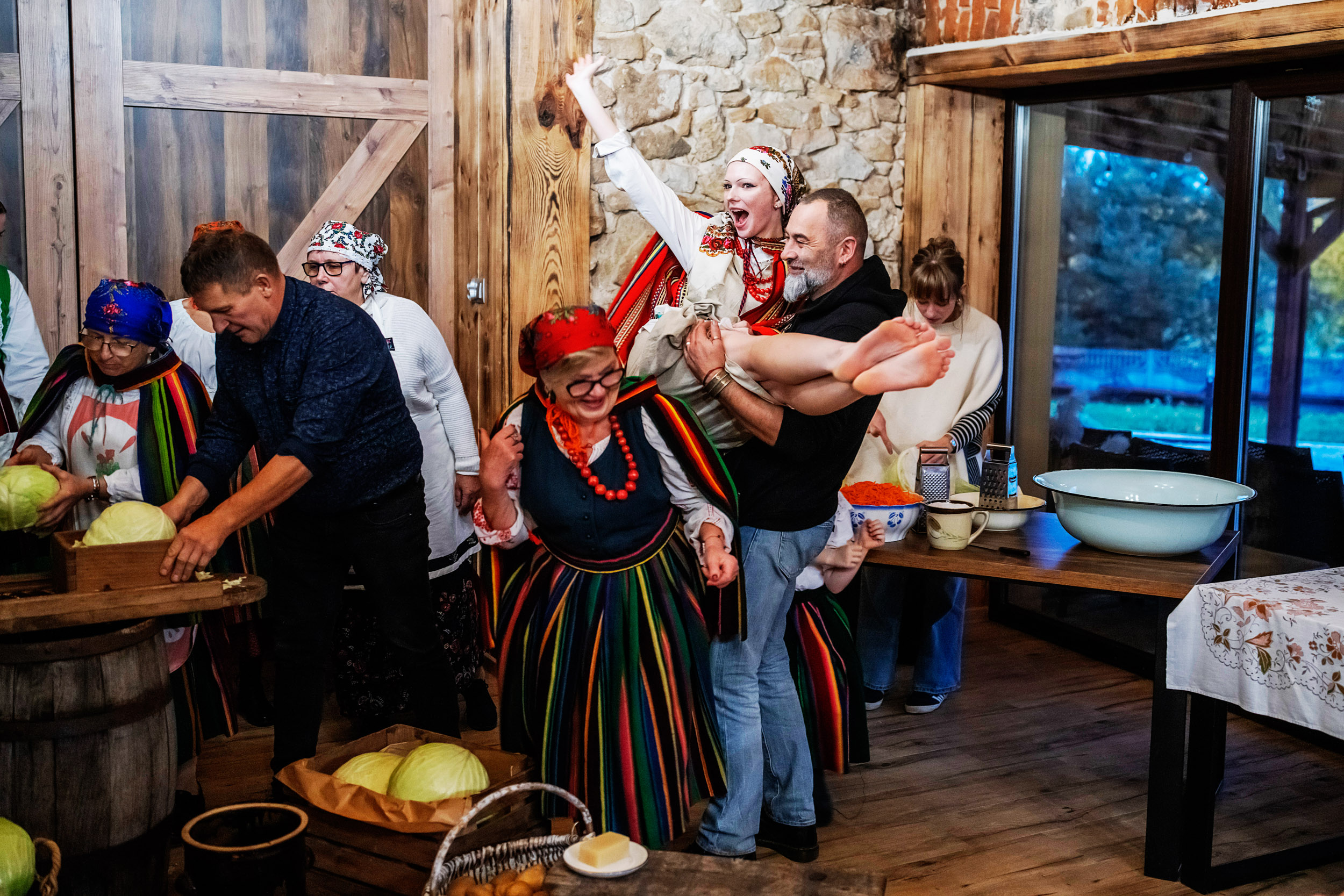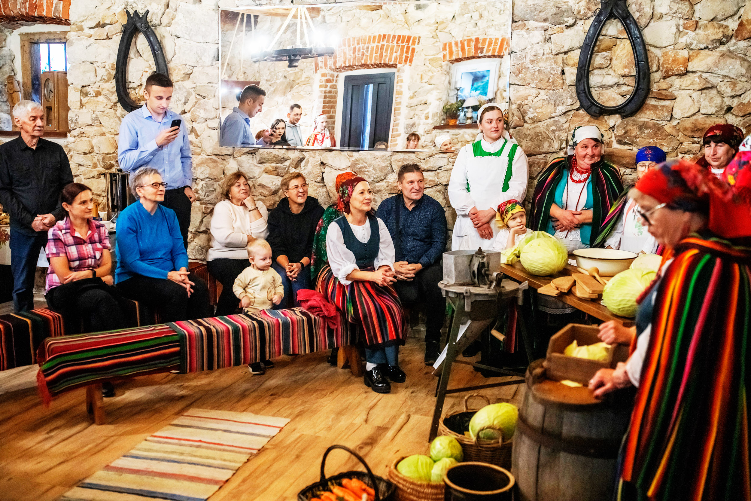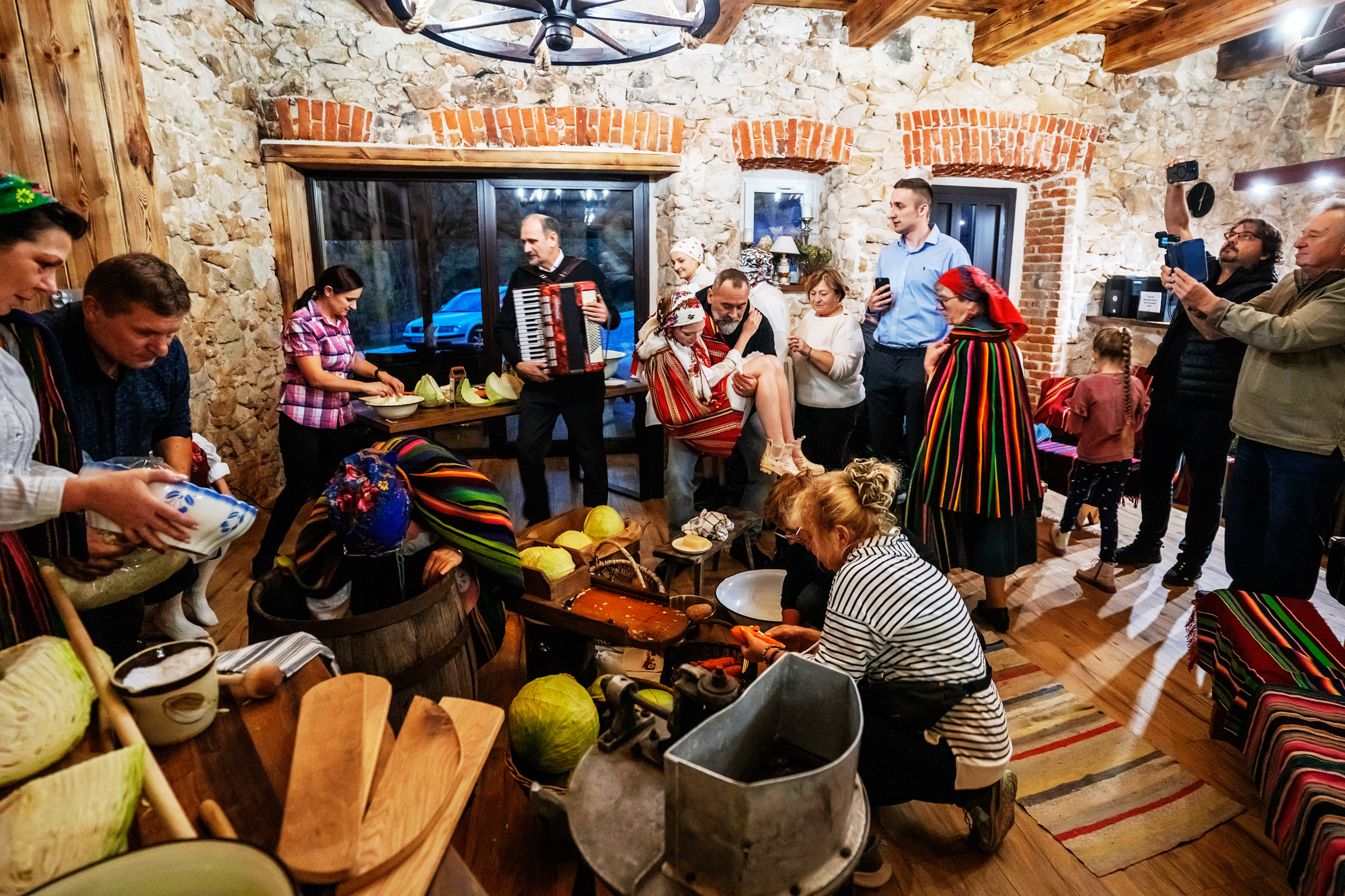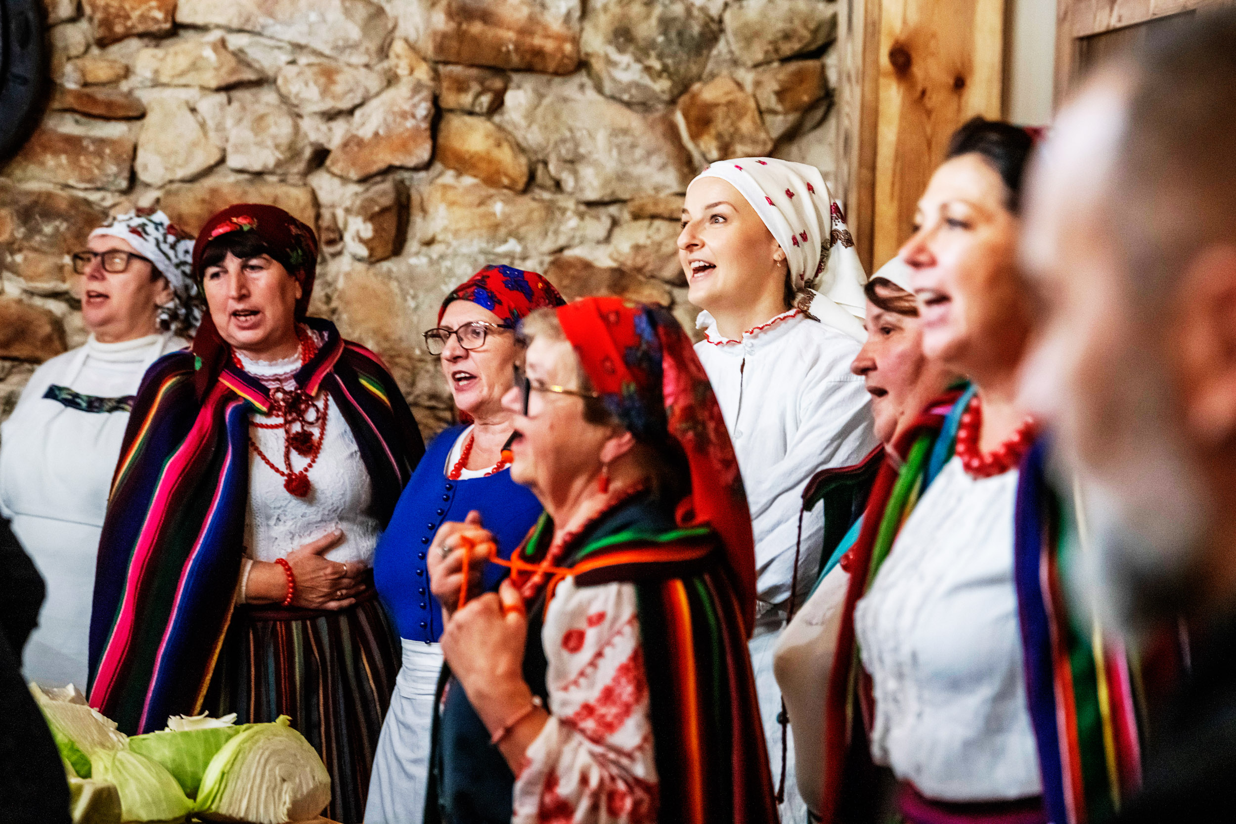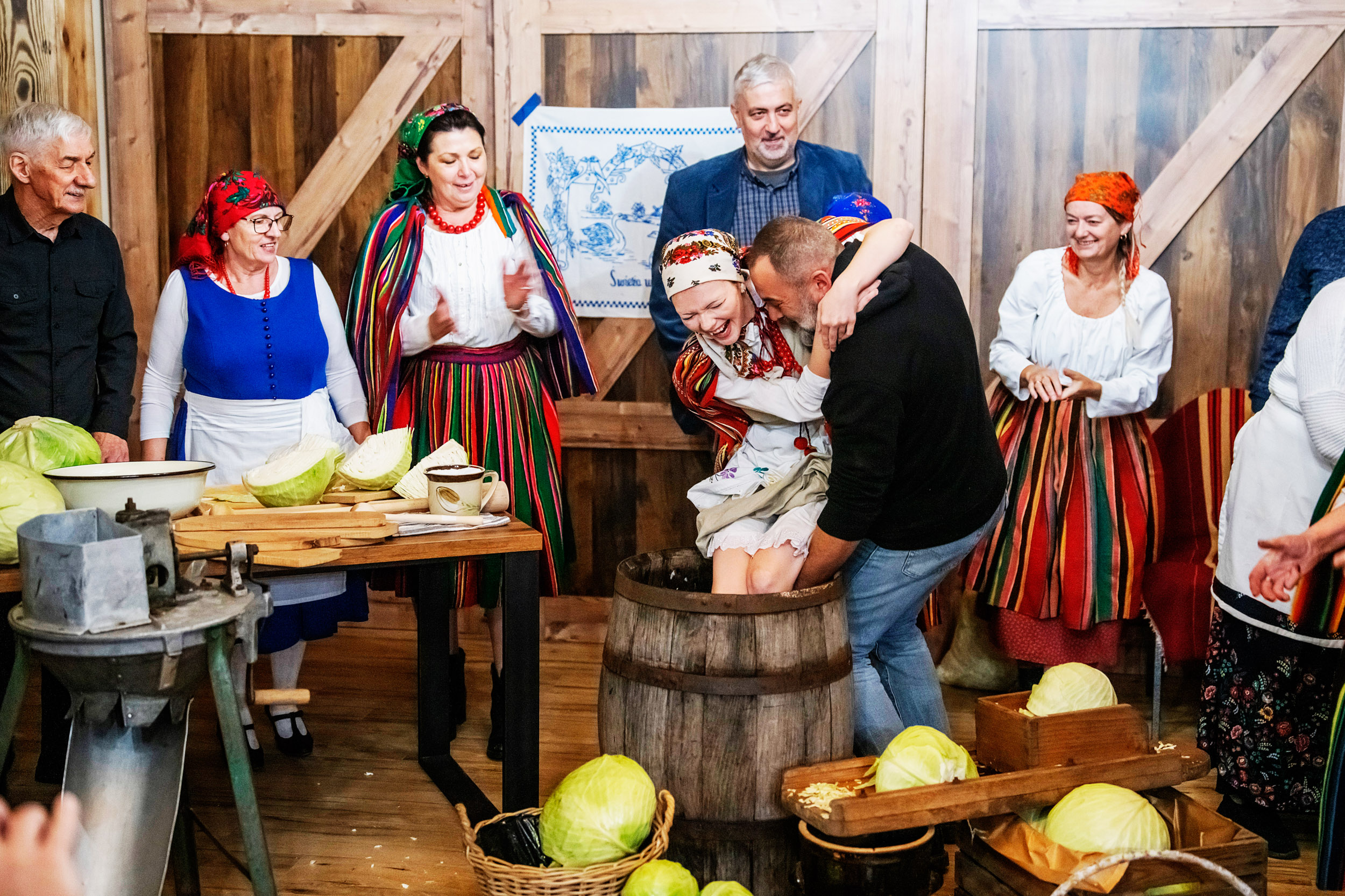 sobota, 18 października 2025To była prawdziwa podróż w przeszłość, do tradycji kultywowanych na polskiej wsi przed laty i przez lata. Ludowy Zespół Śpiewaczy Ręczynianki z powiatu piotrkowskiego zorganizował wieczór kiszenia kapusty po staremu. Była szatkownica na korbkę, było wyparzanie kamieniami z ogniska starej, dębowej beczki, były regionalne przyśpiewki i świetna zabawa przy harmonii.