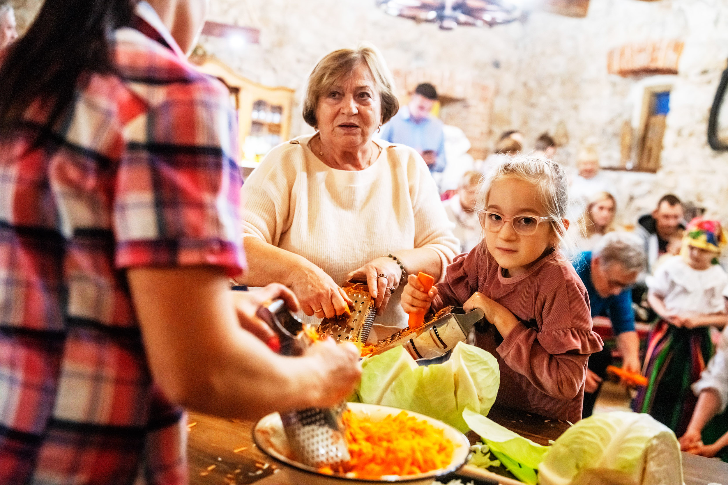 W sobotni wieczór, 18 października mieszkańcy gminy Ręczno mogli zobaczyć, ale i spróbować, albo przypomnieć sobie, jak kiedyś kisiło się kapustę na wsi. Wydarzenie, z wyjątkową oprawą, przygotował Ludowy Zespół Śpiewaczy Ręczynianki. Panie zadbały o wszystkie szczegóły, począwszy od 140 kilogramów świeżej kapusty. Większość była poszatkowana, ale 20 główek czekało na uczestników spotkania, które zostało zorganizowane w Bożej Stajni w Ręcznie. Kapustę można było drobno posiekać przy pomocy dawnych narzędzi m.in. szatkownicy na korbkę. – Mamy szatkownicę, której używało się kiedyś metodą przesuwania kapusty po ostrzu od siebie do siebie – mówi Małgorzata Łukasińska z zespołu Ręczynianki.