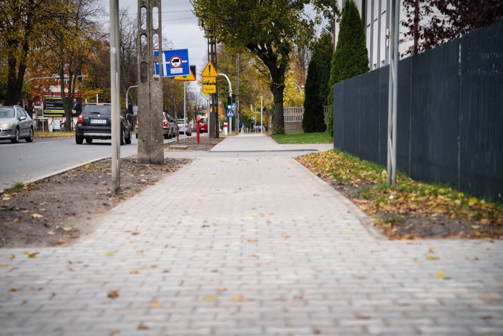 W miejscu starego, zniszczonego chodnika po stronie wschodniej powstał nowy odcinek o długości ponad 400 metrów. Zakres robót objął także modernizację zjazdów, krawężników oraz zieleńce, co poprawiło nie tylko bezpieczeństwo, ale też estetykę otoczenia.