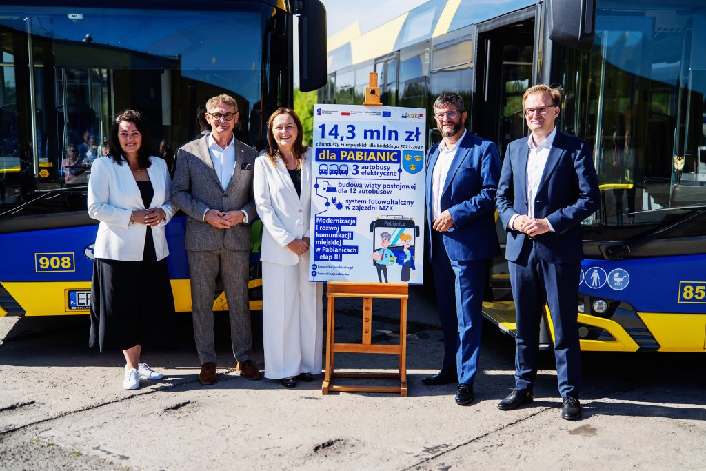 czwartek, 21 sierpnia 2025Miasto Pabianice otrzymało z Urzędu Marszałkowskiego w Łodzi dofinansowanie w kwocie ponad 14 mln zł na realizację projektu „Modernizacja i rozwój komunikacji miejskiej w Pabianicach – etap III”. Środki pochodzą z Funduszy Europejskich dla Łódzkiego 2021–2027, w ramach konkursu „Mobilność miejska”. Dzięki pozyskanym funduszom już w 2027 roku na ulice Pabianic wyjadą trzy nowoczesne autobusy elektryczne. W zajezdni MZK powstanie wiata postojowa dla 12 autobusów z instalacją fotowoltaiczną. System pozwoli na ładowanie autobusów w ciągu dnia z paneli słonecznych, a w nocy zgromadzona energia będzie wykorzystywana do dalszego ładowania pojazdów. Jednocześnie przebudowany zostanie znaczny fragment placu manewrowego w zajezdni.