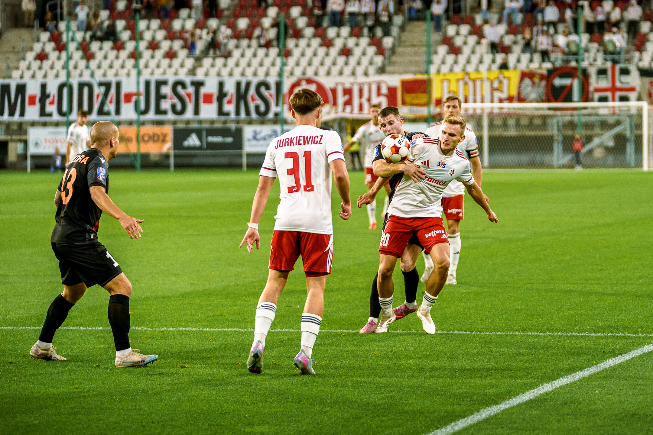 Pierwsza połowa meczu dwóch pierwszoligowców należała do ŁKS. W 12. minucie po dośrodkowaniu z prawej strony Krykuna, skrzydłowy technicznym strzałem w długi róg uzyskuje prowadzenie dla gospodarzy. Osiem minut później głogowianom udało się doprowadzić do wyrównania. Kacper Laskowski otrzymał piłkę na wolne pole, wyprzedził rywali i wbiegł w pole karne, po czym strzelił w krótki róg łódzkiej bramki, zaskakując tym Łukasza Bombę.