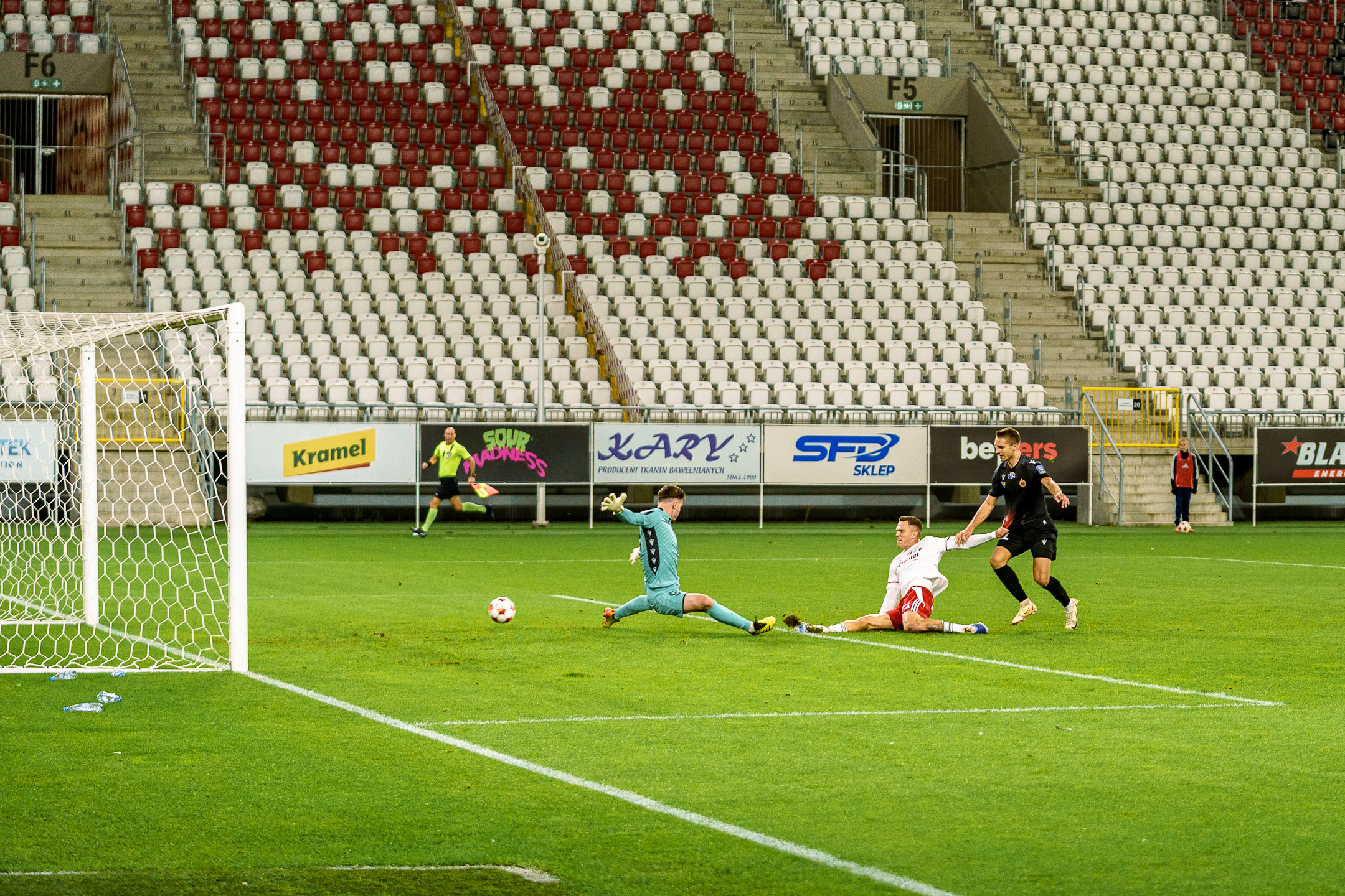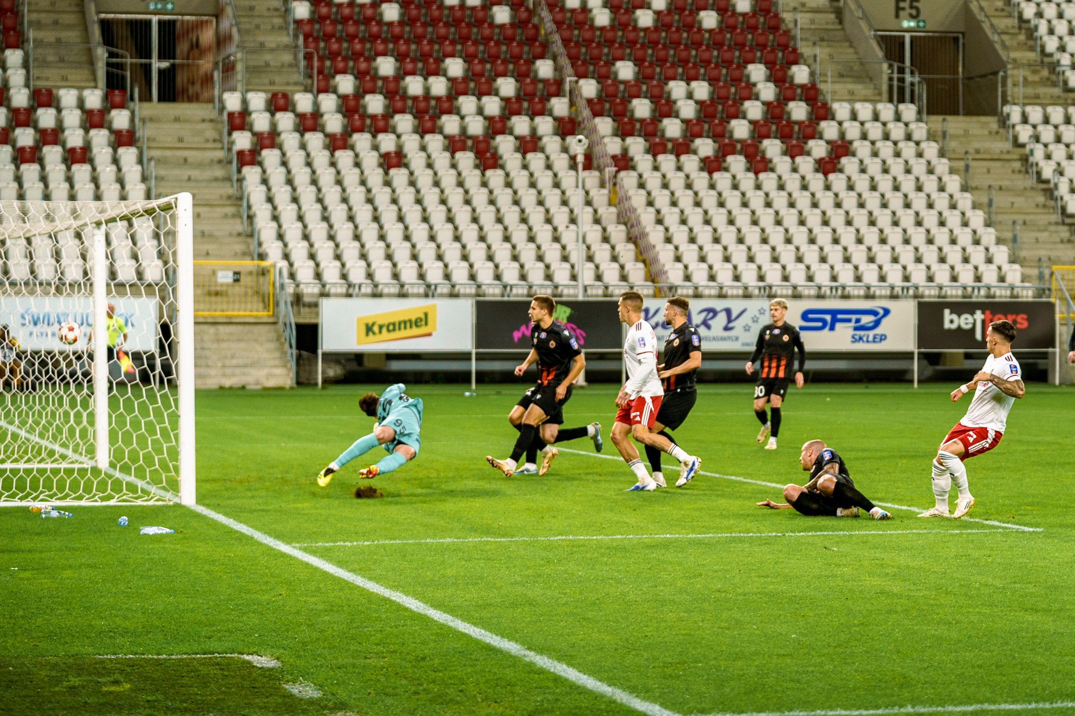 Snajper ŁKS po raz kolejny pokazał wysoką formę siedem minut później. Najpierw zgubił krycie na środku murawy, popędził na bramkę Chrobrego. W sytuacji sam na sam, wygrał pojedynek z Pawłem Lenarcikiem i było 3:1.