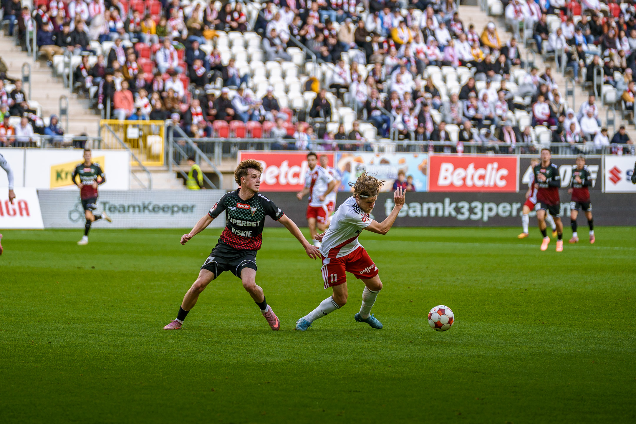 Po przerwie inicjatywę przejęli tyszanie. W 63. minucie po rzucie rożnym wykonywanym przez GKS, zapanowało zamieszanie w polu karnym gospodarzy. Aleksander Bobek, bramkarz popełnił błąd wychodząc do piłki. Wykorzystał to Jakub Tecław pakując futbolówkę do pustej bramki. Tyszanie nie zdążyli nacieszyć się z wyrównania, gdy odpowiedział ŁKS. Bastien Toma dośrodkował w pole karne, a lot futbolówki próbował przeciąć Julian Keiblinger, ale zrobił to tak nieszczęśliwie dla gości, że wpakował piłkę do własnej bramki.