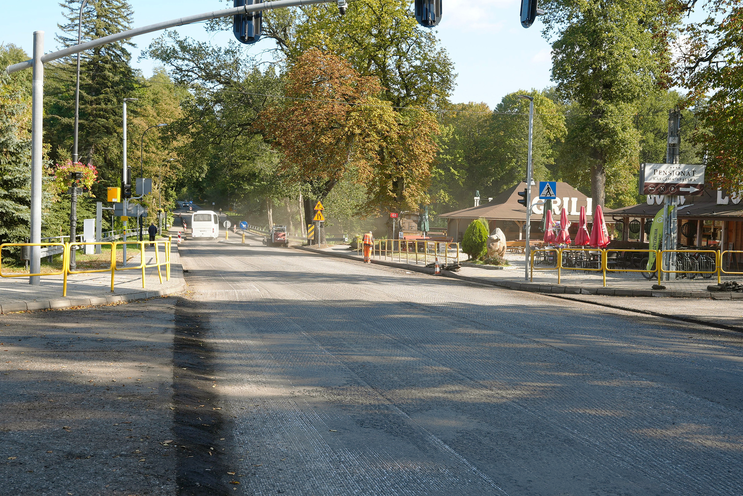piątek, 3 października 2025- Na drodze krajowej nr 48 trwa remont nawierzchni, prace prowadzone są na odcinku około 800 metrów w centrum Spały, Wartość inwestycji to blisko 1,5 mln zł. Celem prac jest poprawa komfortu i bezpieczeństwa kierowców i podróżnych.