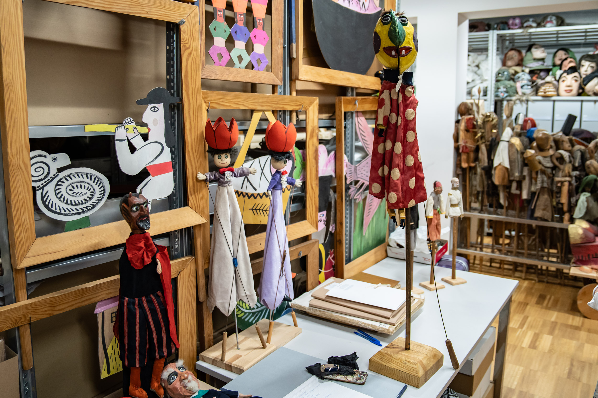 Bardzo ważną częścią zbioru są projekty lalek oraz scenografii do przedstawień lalkowych. W kolekcji muzeum są projekty unikatowe, których autorami są uznani twórcy. Przykłady? Prace Alego Bunscha do cyklu „Kolorowe piosenki”, uznawanego za podwaliny polskiego lalkarstwa. Spektakl został zainicjowany w Teatrze Groteska w Krakowie, później - w licznych odsłonach - przez lata był kontynuowany w łódzkim Arlekinie, do którego z Krakowa przyjechał założyciel teatru Henryk Ryl. Projekt scenopisu pochodzi z roku 1949. Równie cenny jest scenopis Haliny Bielińskiej-Haupe do „Dziecka Gwiazdy” w reżyserii Janusza Galewicza, słynnego reżysera serii o Misiu Uszatku, ale też kierownika literackiego m.in. Teatru Pinokio w Łodzi. Ten scenopis obrazkowy to nic innego, jak dzisiejsze storyboardy tworzone do filmów.