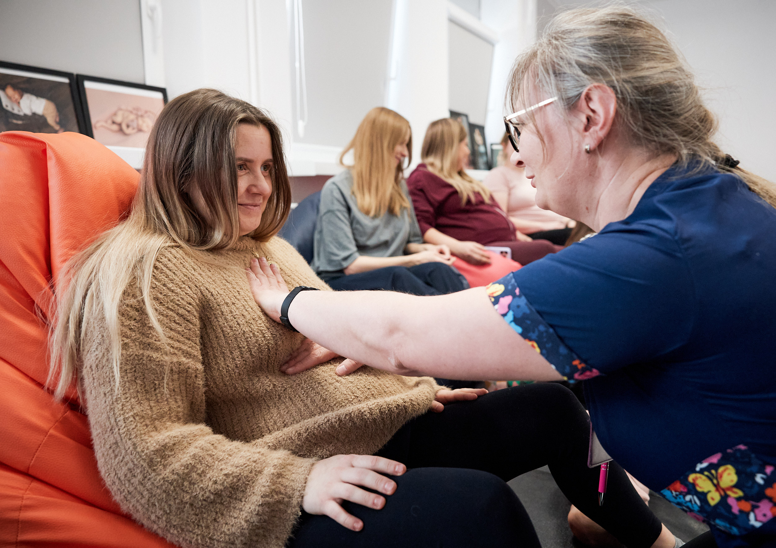 Inna przyszła mama dodaje z uśmiechem: – Fajnie tu jest, miło. Bardzo lubię ten szpital. Mam porównanie z innymi i naprawdę wszystko wygląda tu pięknie. Dostałam dużo wiedzy o tym, jak trzymać dziecko, jak się opiekować, jak robić masaże. Zobaczyłam noworodka po raz pierwszy i... płakałam przez cały czas. Nie wiem, co się ze mną działo, chyba hormony – mówi kobieta. - Uczę się oddychać brzuchem, bo wcześniej oddychałam tylko klatką piersiową. Teraz czuję, że robię to dobrze. Będę rodzić w tym szpitalu, więc uznałam, że tu też przygotuję się do porodu. Na pewno mi się to przyda.