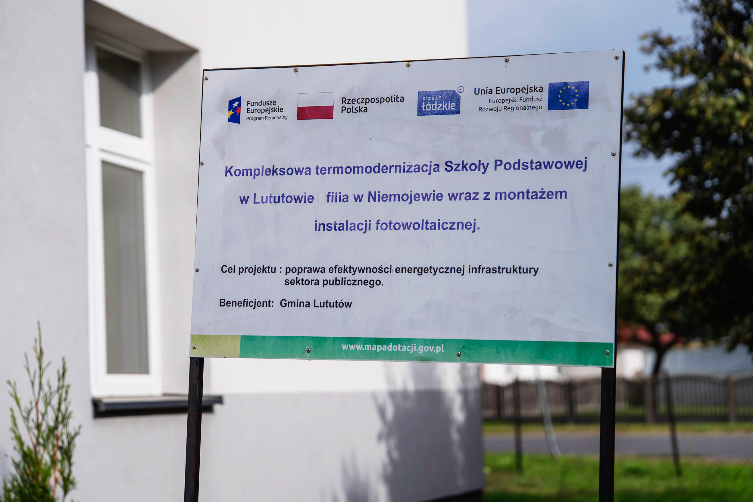 Budynek został ocieplony, inwestycja obejmowała również m.in. wymianę okien i drzwi, systemu grzewczego, montaż energooszczędnego oświetlenia oraz instalacji fotowoltaicznej. Dziś część tego budynku znów przechodzi remont, bo właśnie w budynku podstawówki – w niewykorzystywanych dotychczas pomieszczeniach – powstanie filia Klubu Malucha w Lututowie. To kolejne zadanie, na które gmina pozyskała wsparcie unijne, tym razem z Krajowego Planu Odbudowy.