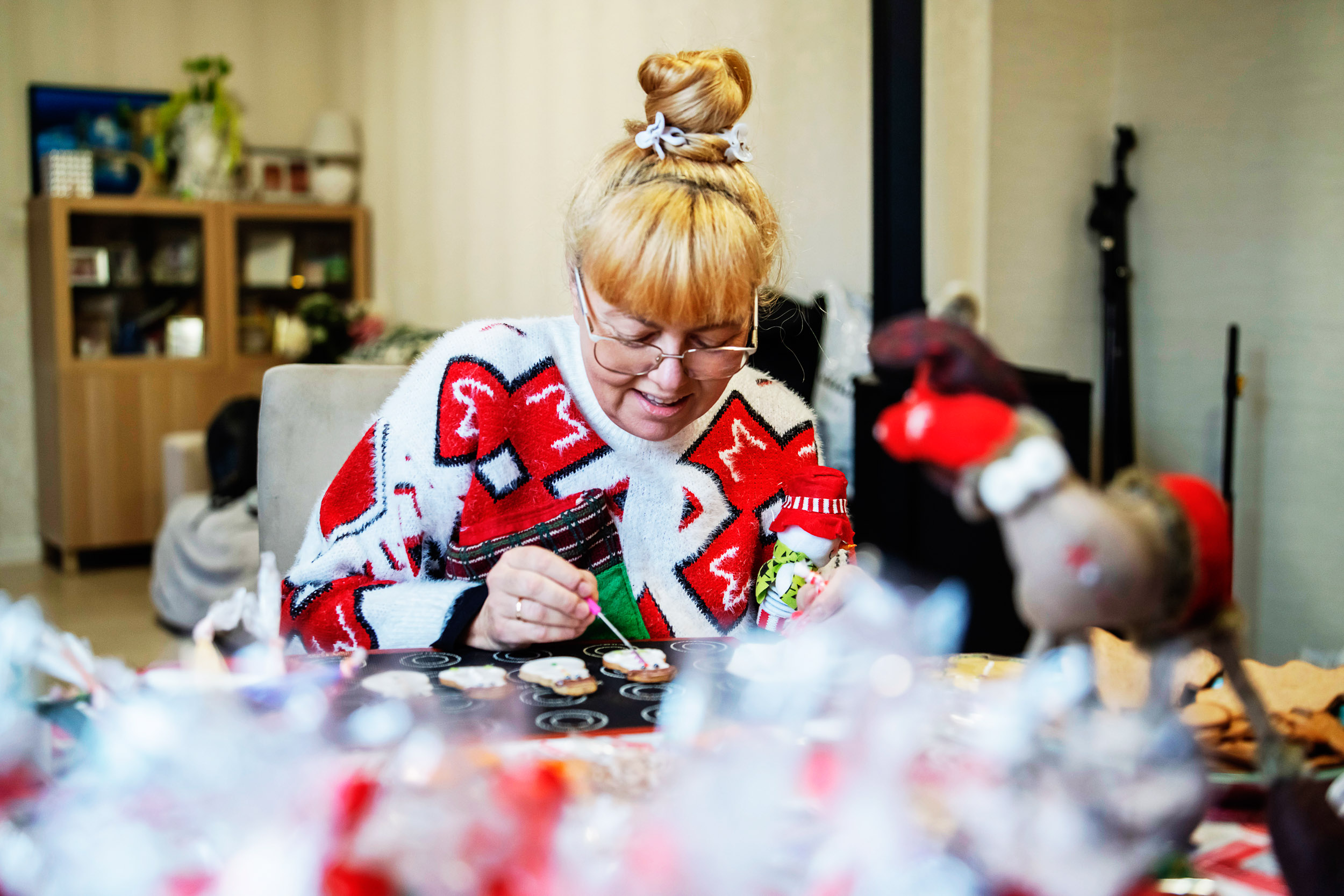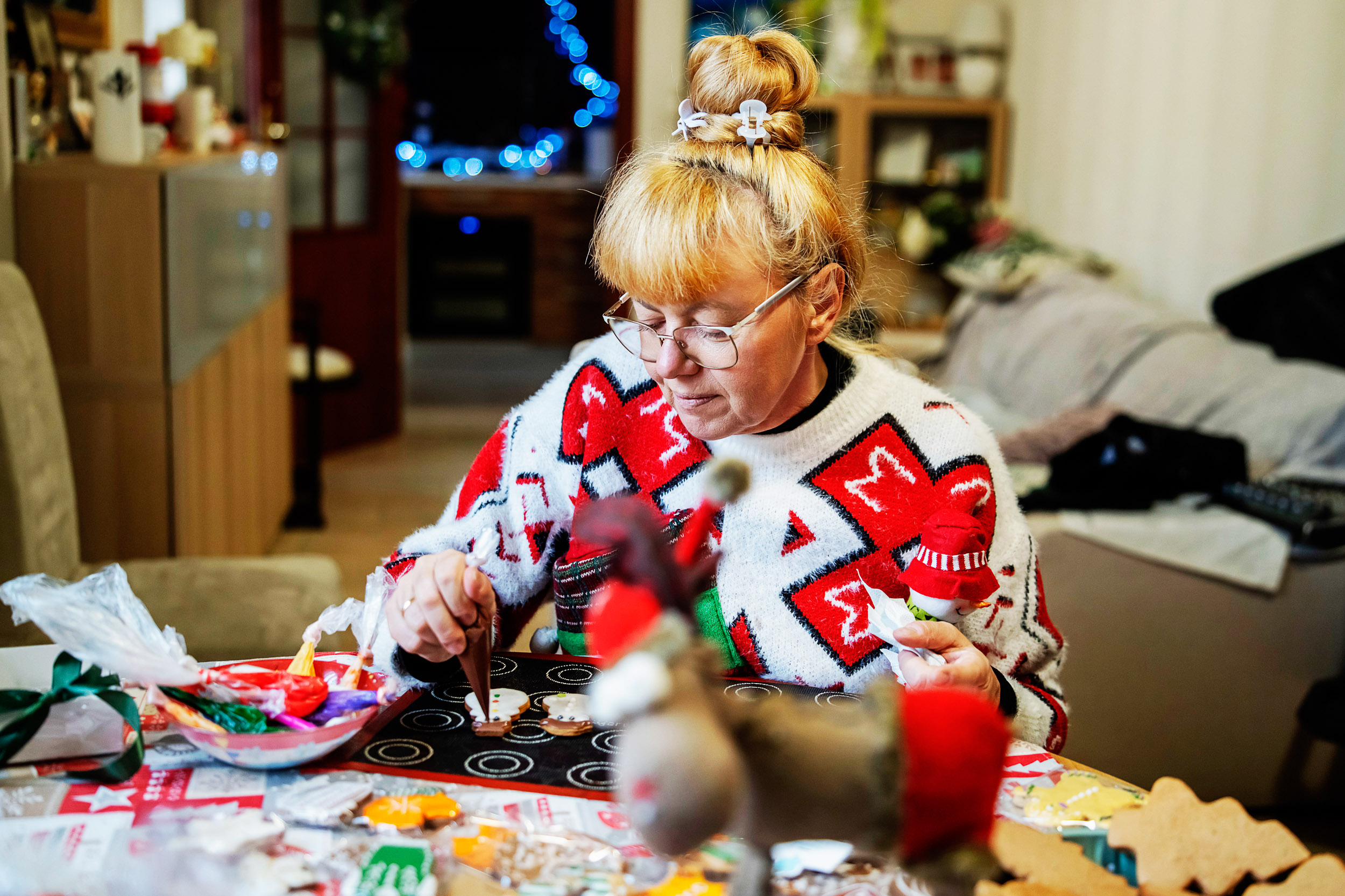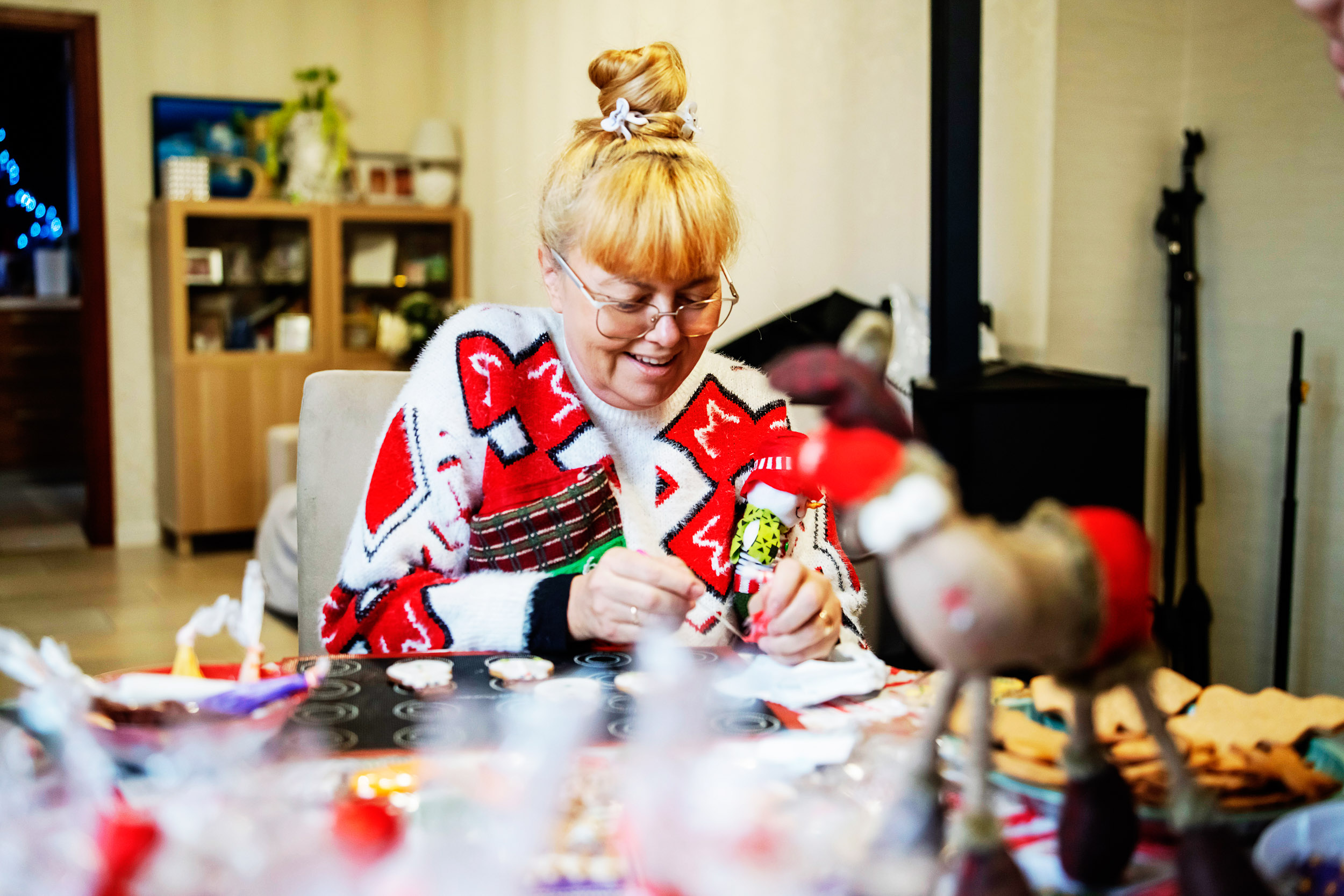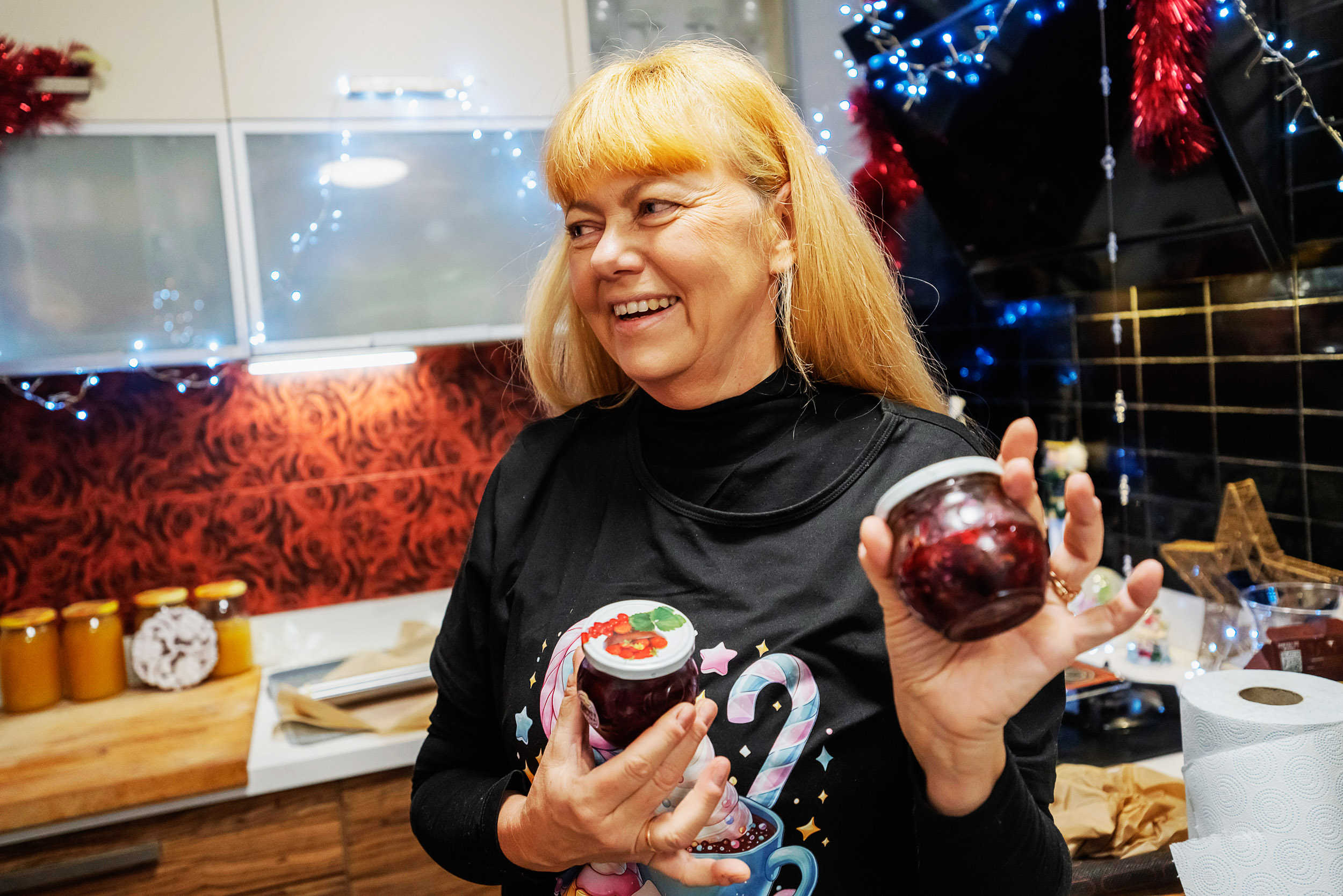 Zapach imbiru w domu pani Joanny czuć cały rok, bo pierniki robi bez przerwy. Najwięcej serduszek, ale wszystko zależy od fantazji autorki i zamówień klientów. Na Wielkanoc dominują piernikowe jajka, a teraz, przed gwiazdką, wszystko co, wiąże się ze świętami Bożego Narodzenia. Są piernikowe domki, choinki, swetry, gwiazdki, bombki, mikołaje. Każdy inny, każdy ręcznie malowany. Są pierniki wegańskie, bez jajek, sody i proszku do pieczenia. – U mnie każdy piernik jest inny, niektóre ręcznie wykrawam, jeżeli jest takie zamówienie – opowiada pani Joanna. Przed piernikami była mistrzynią tortów, ale teraz zdecydowanie woli mniejsze formy. Uczy się podglądając innych cukierników w Internecie, ale i podczas warsztatów. Lubi też wyzwania – z lawendy i róży jadalnej rosnących w ogrodzie robi konfitury.