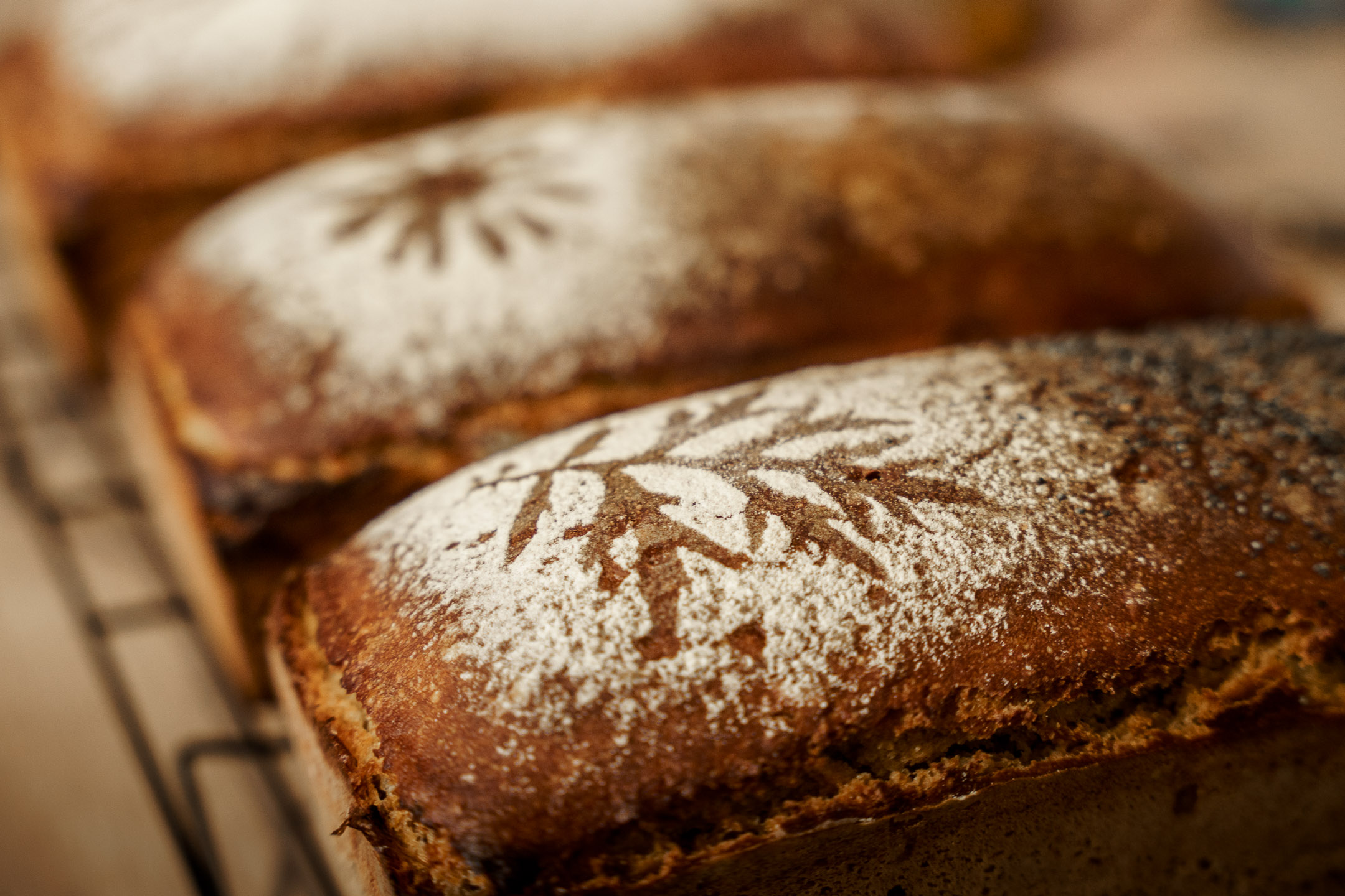 „Pół na pół”, bo są dwie, w ofercie mają dwa rodzaje chlebów, a każdy bochenek ma dwa rodzaje dekoracji na skórce. W środku odrobina ziaren lub czarnuszki. Dwa – podstawowe – są też rodzaje bułeczek, które co tydzień, często nocami, wygniata z ciasta drożdżowego pani Julia. Podstawowe, bo sezonowo dochodzą nowe smaki – np. ze śliwką, są bułki z burakiem, z ziemniakiem, są też ciasta drożdżowe.