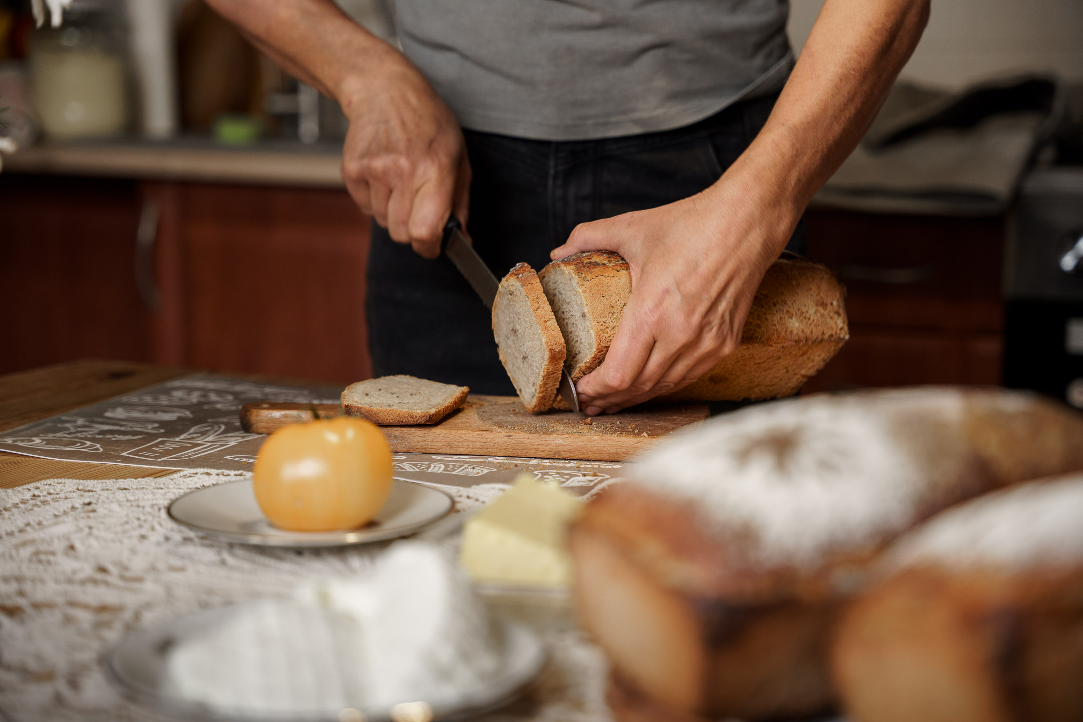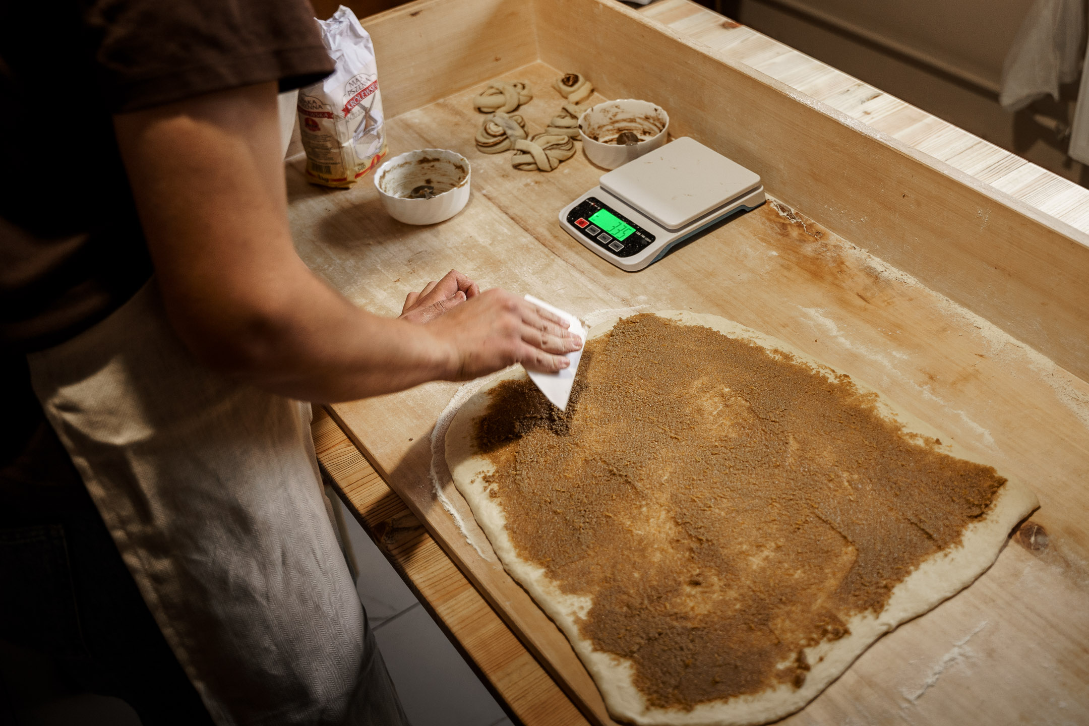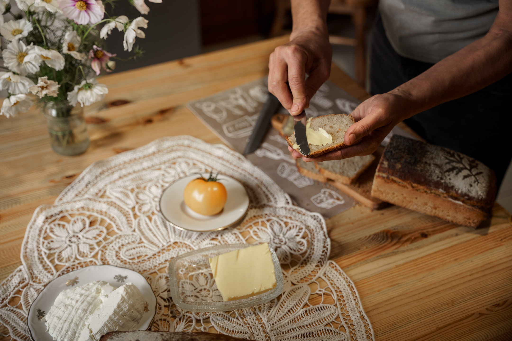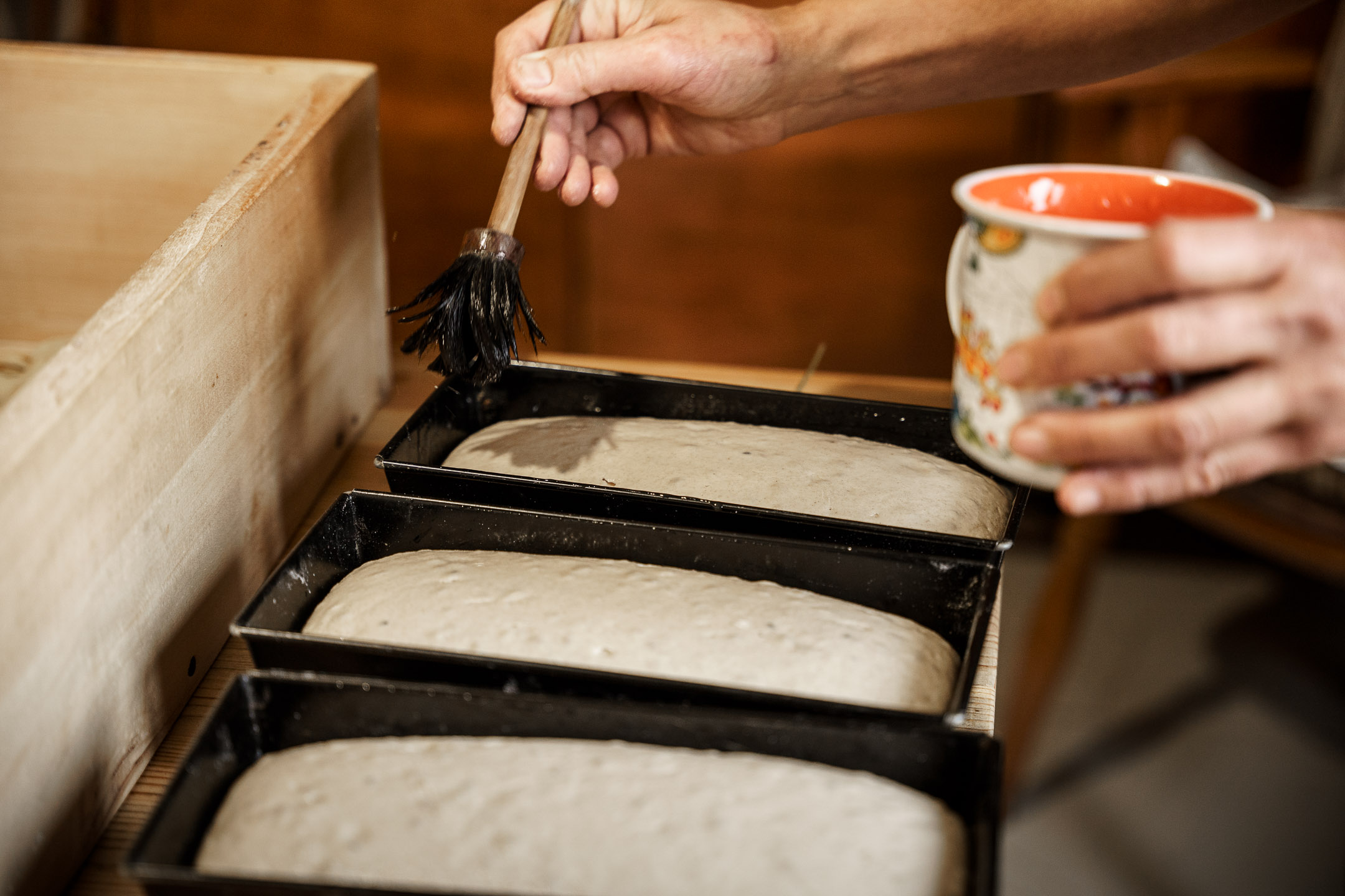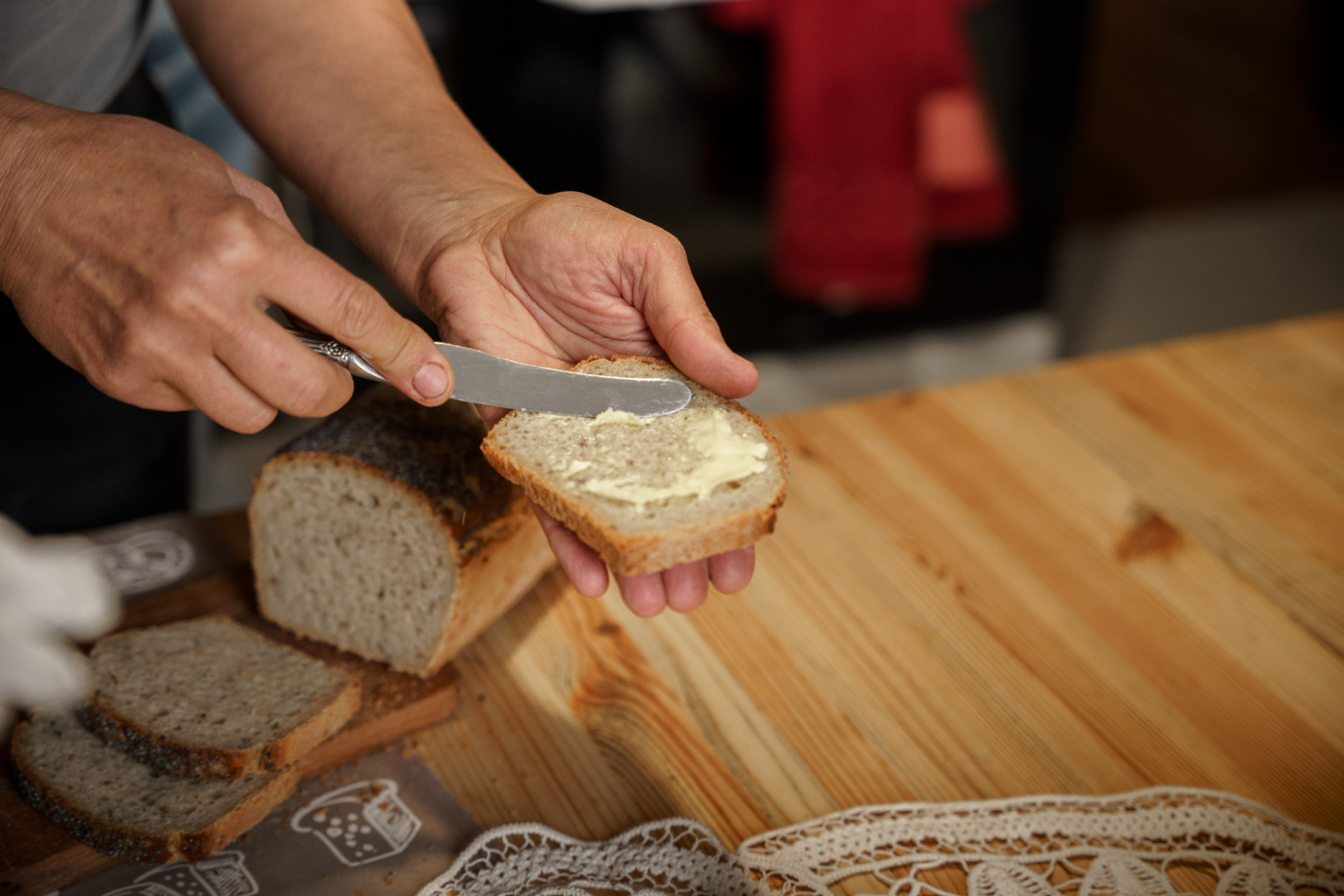 Wszystko powstaje w domowej kuchni w Lubieniu, gdzie króluje potężna stolnica z drewna topolowego. To na niej pani Aleksandra wyrabia dwa rodzaje chlebów – żytnie i orkiszowe. Oba na żytnim zakwasie, metodami, jakie kiedyś stosowały gospodynie na wsi.