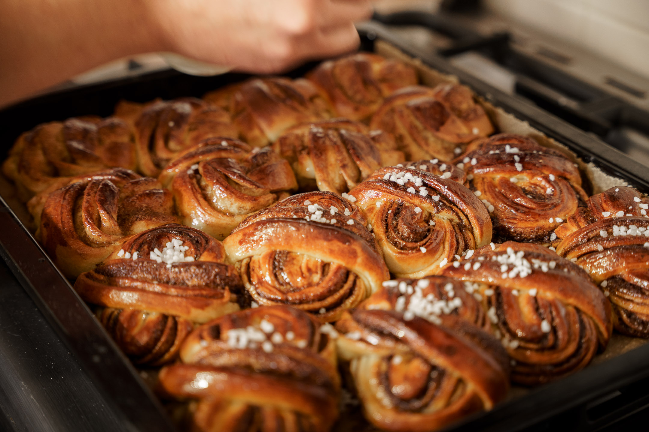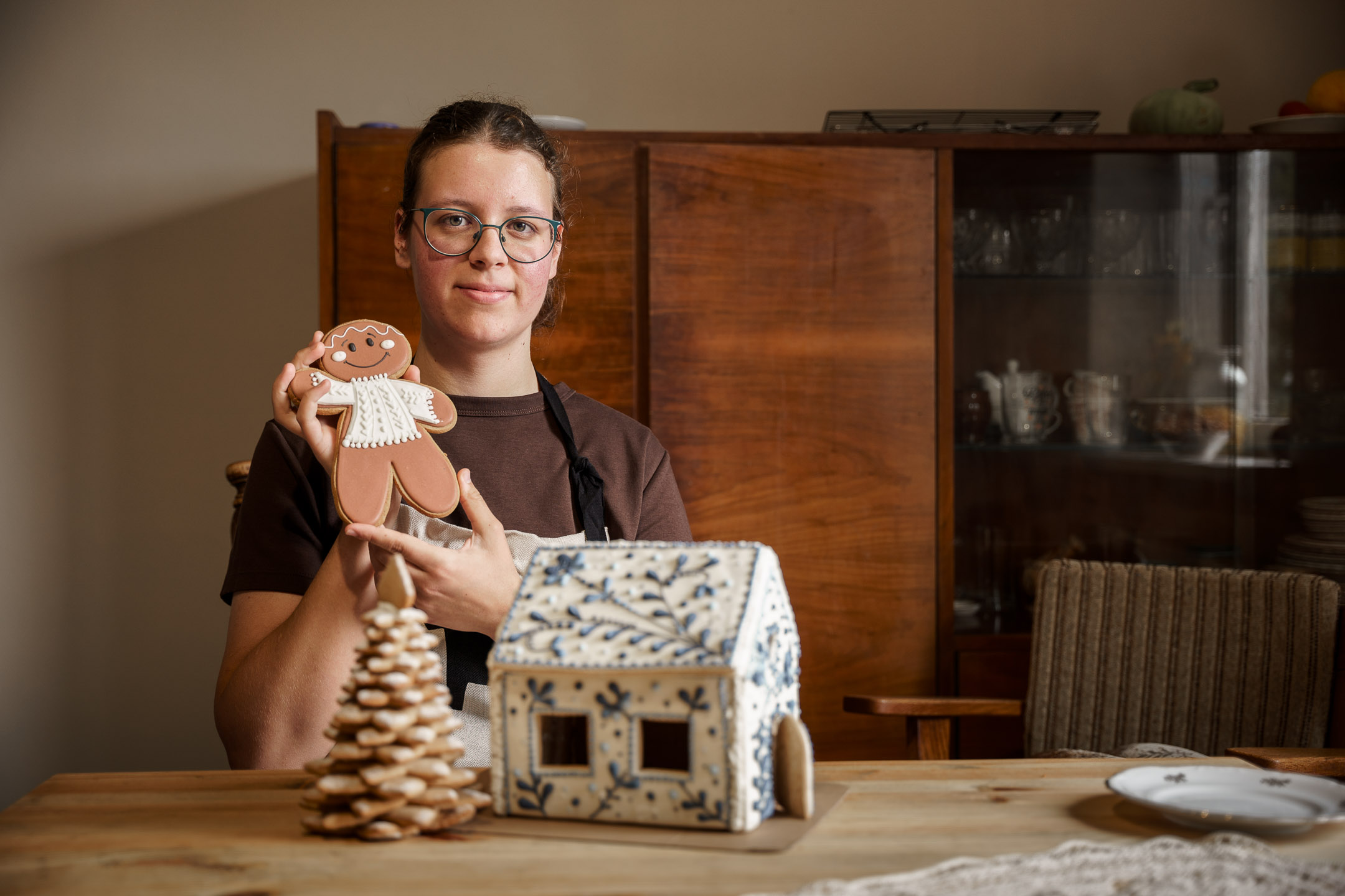 Aktualnie piec jest w konserwacji, więc bochenki – a podłużnych foremkach - wypieka w piekarniku, co sprawia, że zapach świeżego chleba roznosi się po całym domu i miesza ze słodkim aromatem cynamonu. To już domena pani Julii, która inspiracji do swoich słodkości szuka w Internecie, choć tak naprawdę oferta jest dopasowana do sezonowych zbiorów. Oprócz flagowych cynamonek, są bułeczki z pomarańczą z przyprawami np. goździkami i kardamonem, z jabłkiem, ze śliwką, maliną. Są też z domowym twarogiem, z rodzynkami i kawałkami czekolady, albo z marchewką, burakiem, czy kajzerki z ziemniakiem. Panie robią też bajgle i precle. Wkrótce zacznie się sezon na pierniki i to może być kolejny przebój „Pół na pół”. Domowe, aromatyczne pierniczki pani Oli zna cała rodzina, a klienci rynków „Prosto od rolnika” dostaną je w wersji bardzo artystycznej, bo zdobione zdolną dłonią pani Julii.