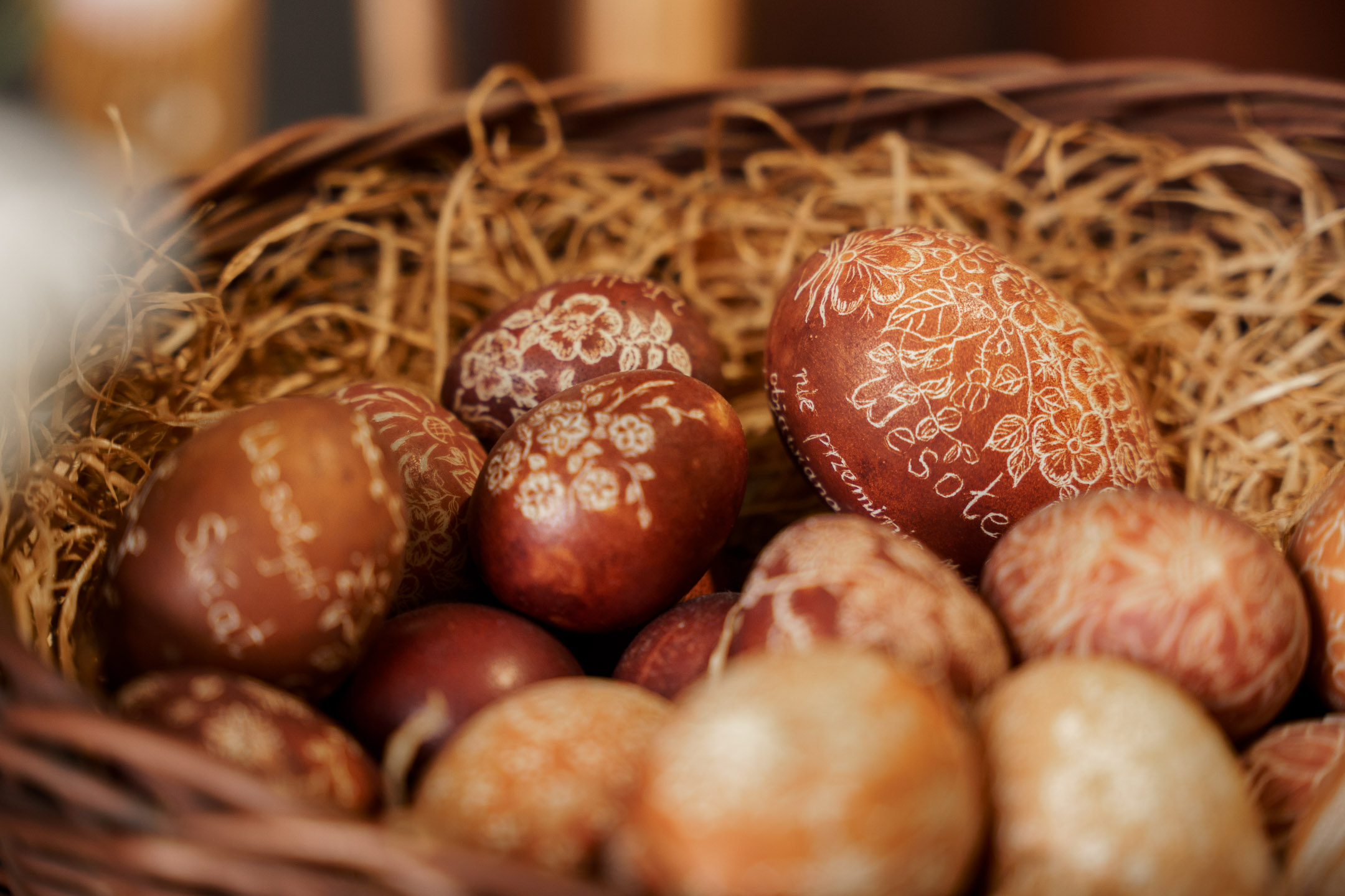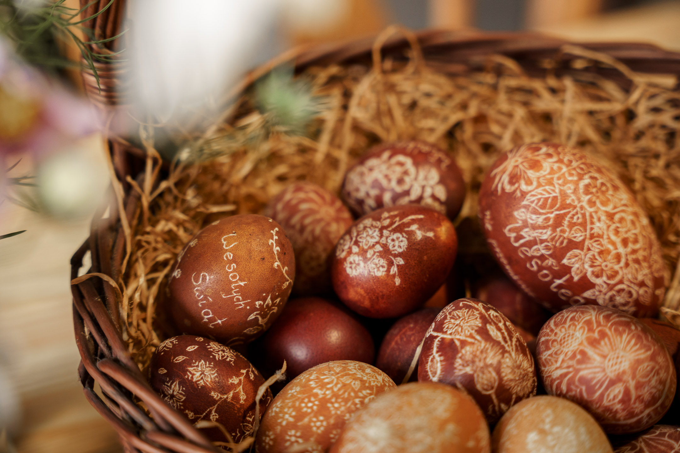 Z kolei wielkanocną ofertę uzupełniają przepiękne kraszanki, które pani Aleksandra zdobi skrobiąc farbę żyletką.